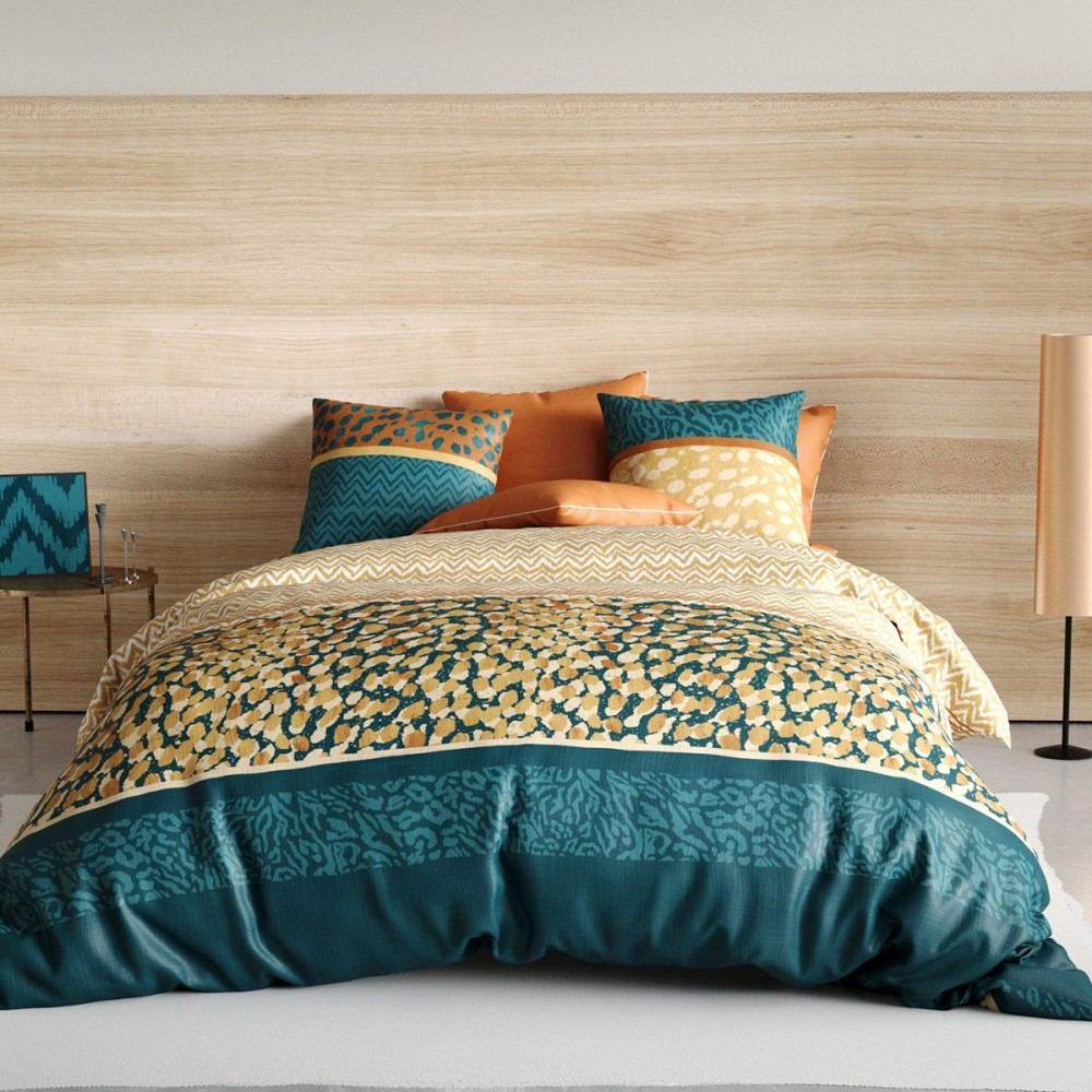 Très belle housse de couette Fauve pour lit 2 personnes de dimensions 240x220 cm en 100% coton à tissage très serré 57 fils avec ses 2 taies d'oreillers 63x63 cm.