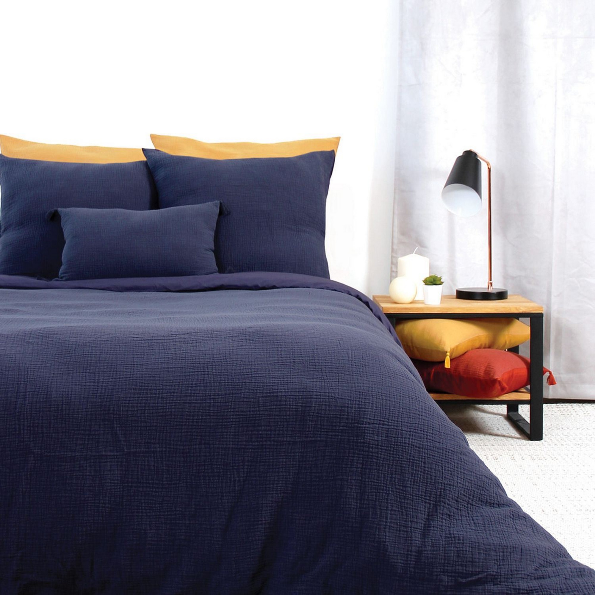 Housse de couette 240x260 + 2 taies d'oreiller 63x63 cm Gaze de Coton Marine
