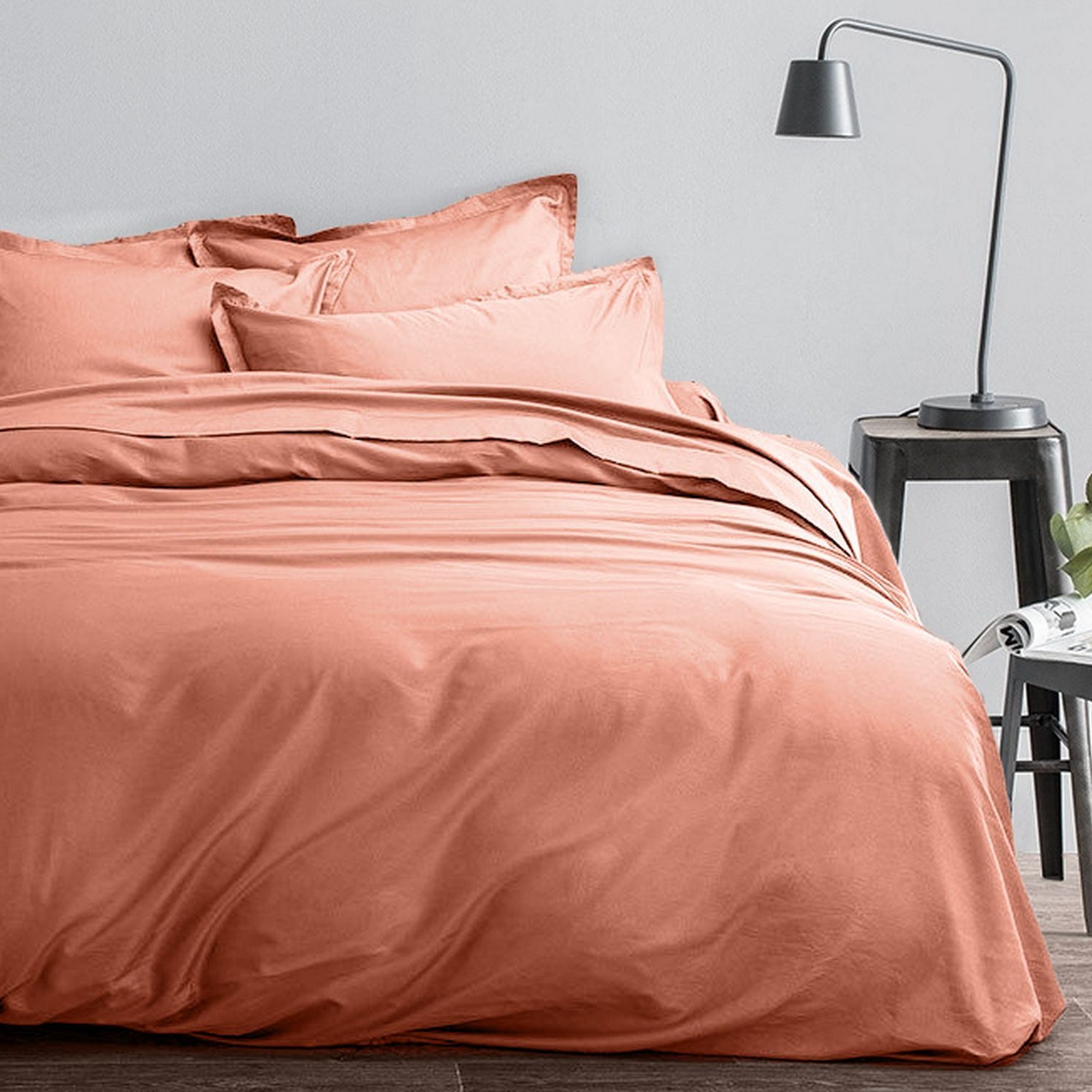 Housse de couette 240x260 + 2 taies d'oreiller 63x63 cm Satin de Coton Rose Thé