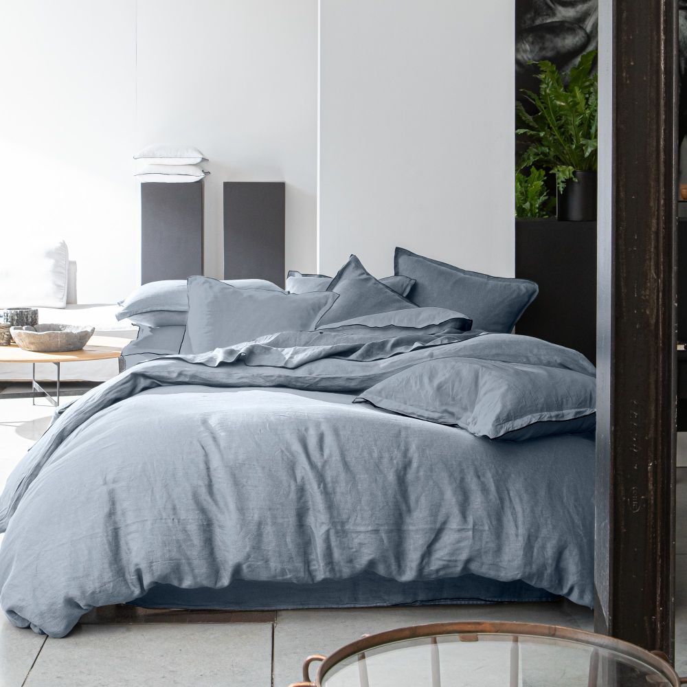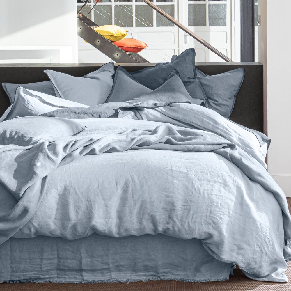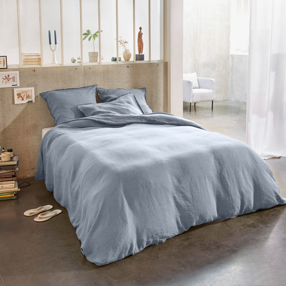 Housse de couette 240x260 cm + 2 taies d'oreiller 65x65 cm en lin Français lavé Glacier