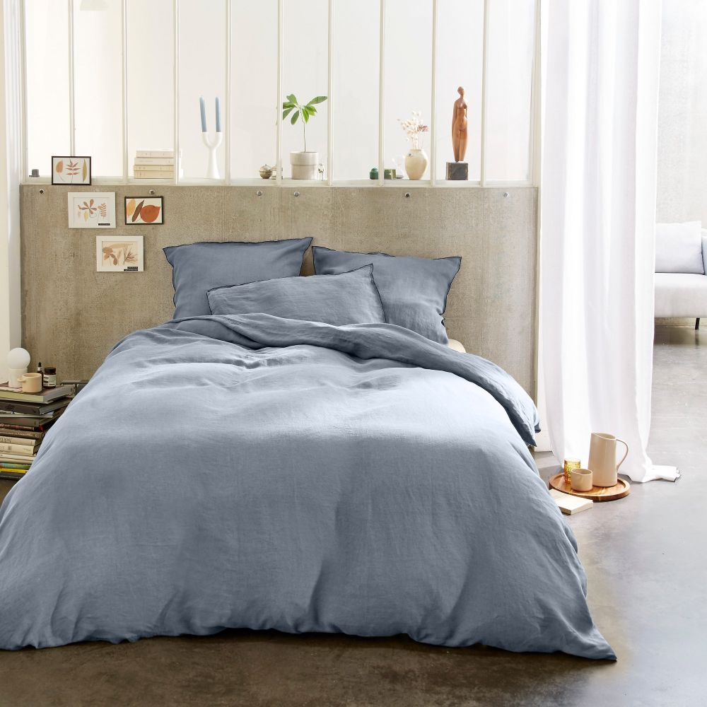 | Libellé | Housse de couette 240x260 cm + 2 taies d'oreiller 65x65 cm en lin Français lavé Glacier |