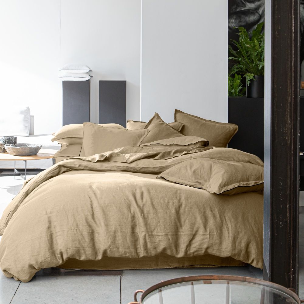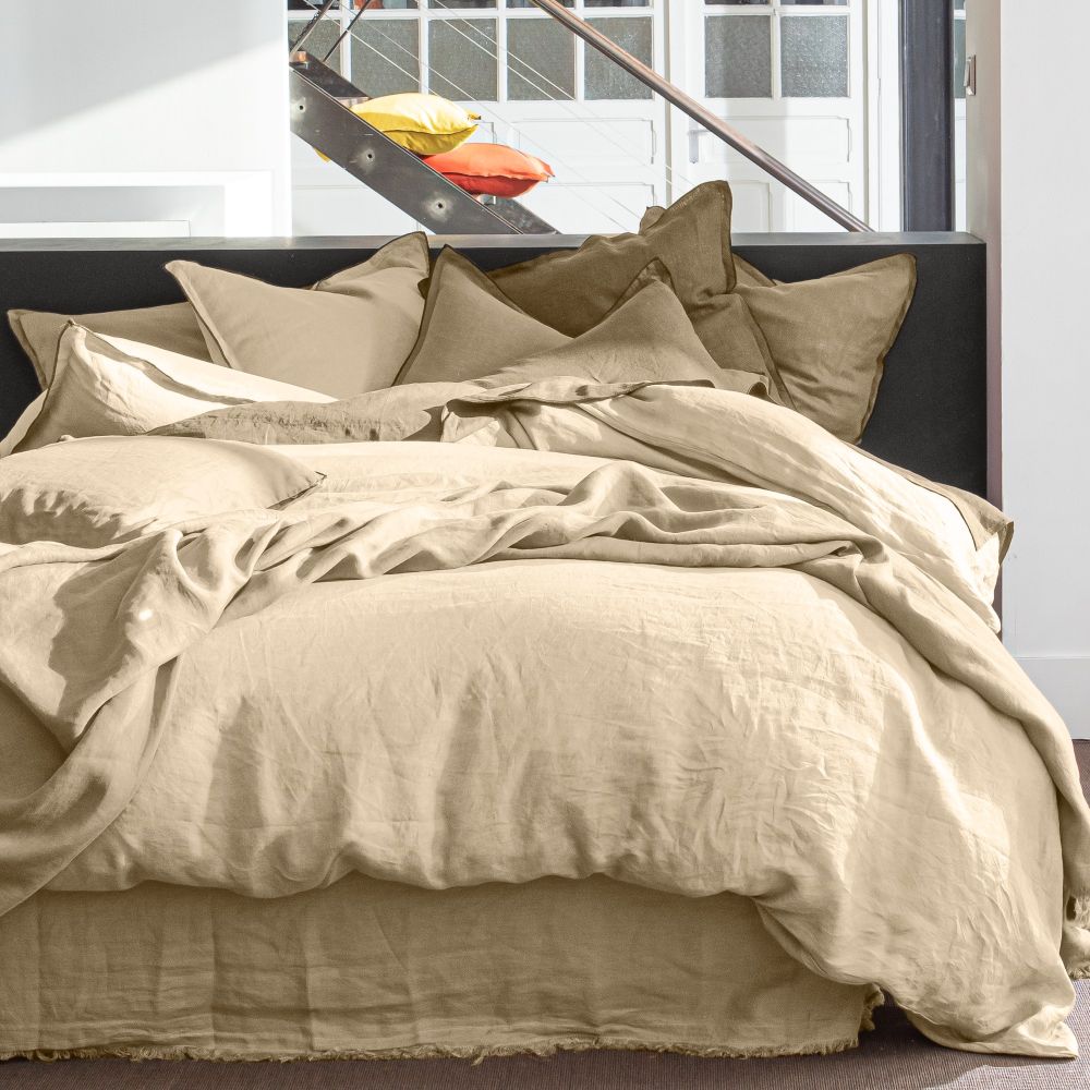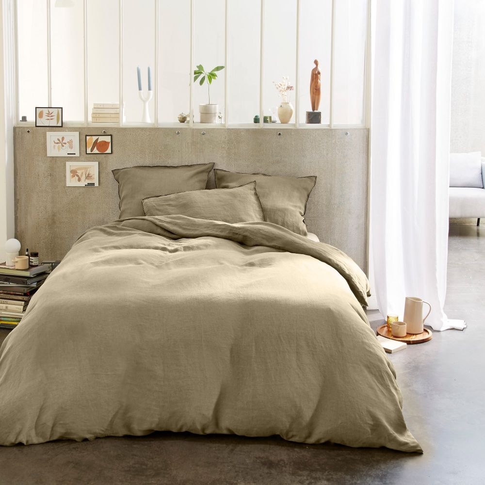 Housse de couette 240x260 cm + 2 taies d'oreiller 65x65 cm en lin Français lavé Latte
