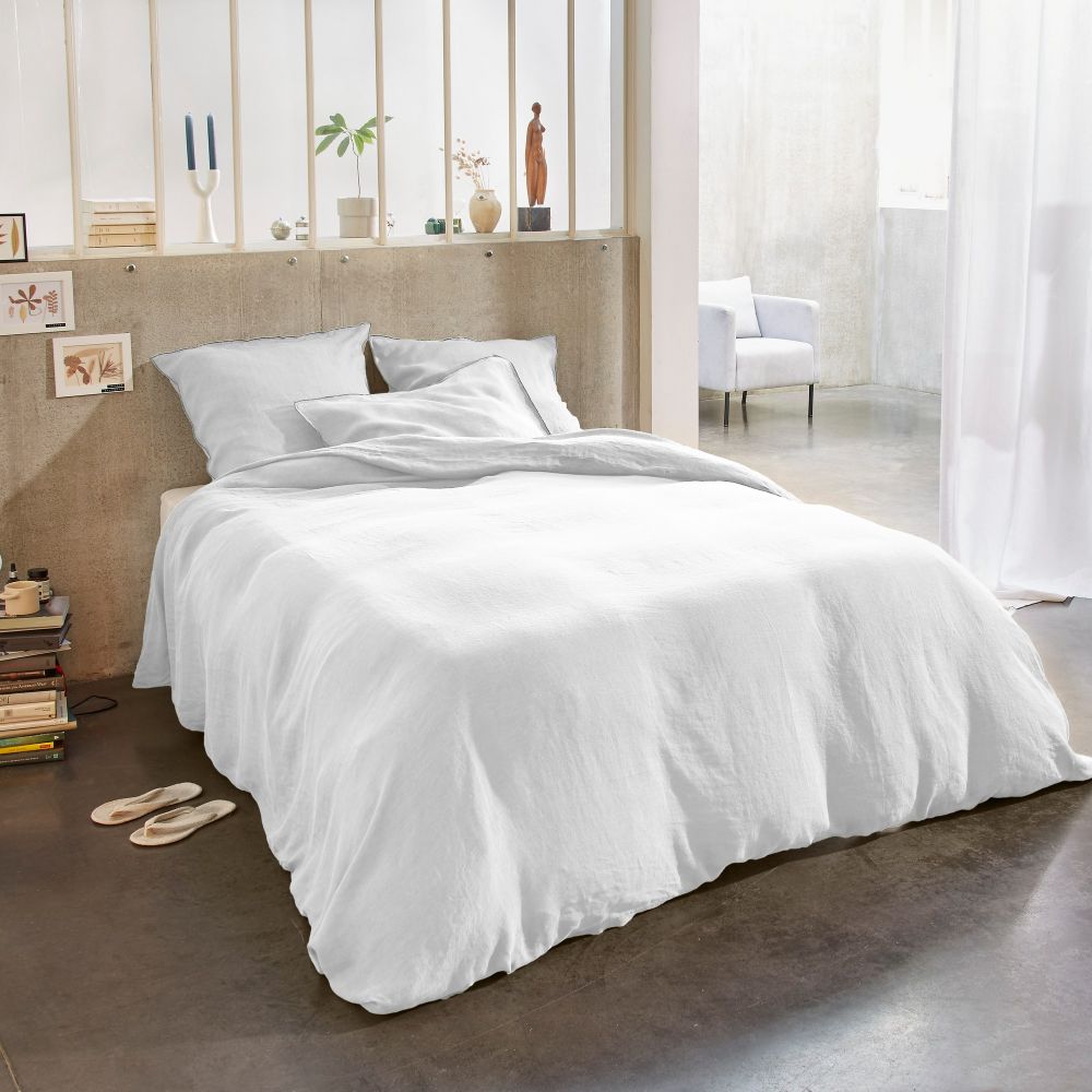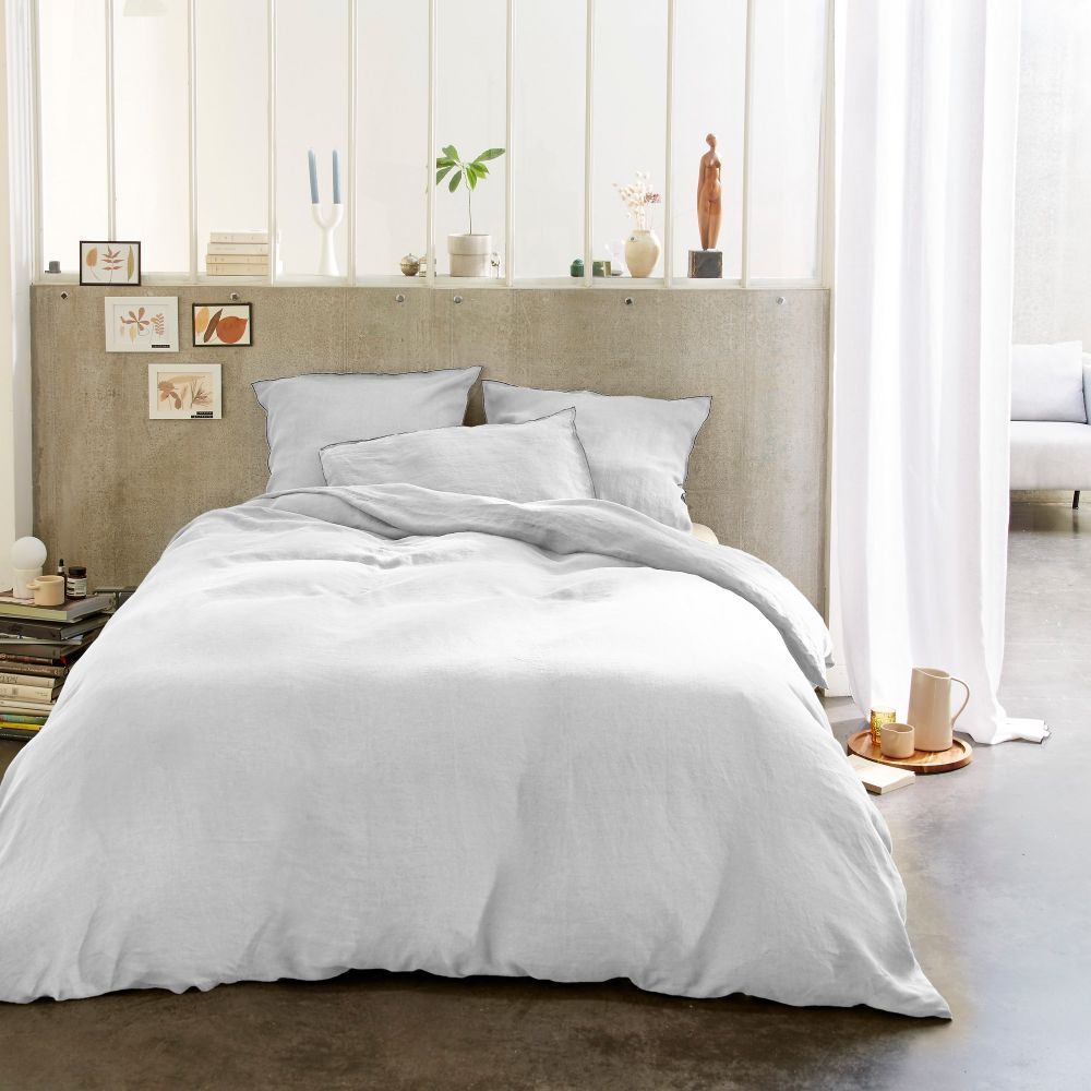 | Libellé | Housse de couette 240x260 cm + 2 taies d'oreiller 65x65 cm en lin Français lavé Meringue |