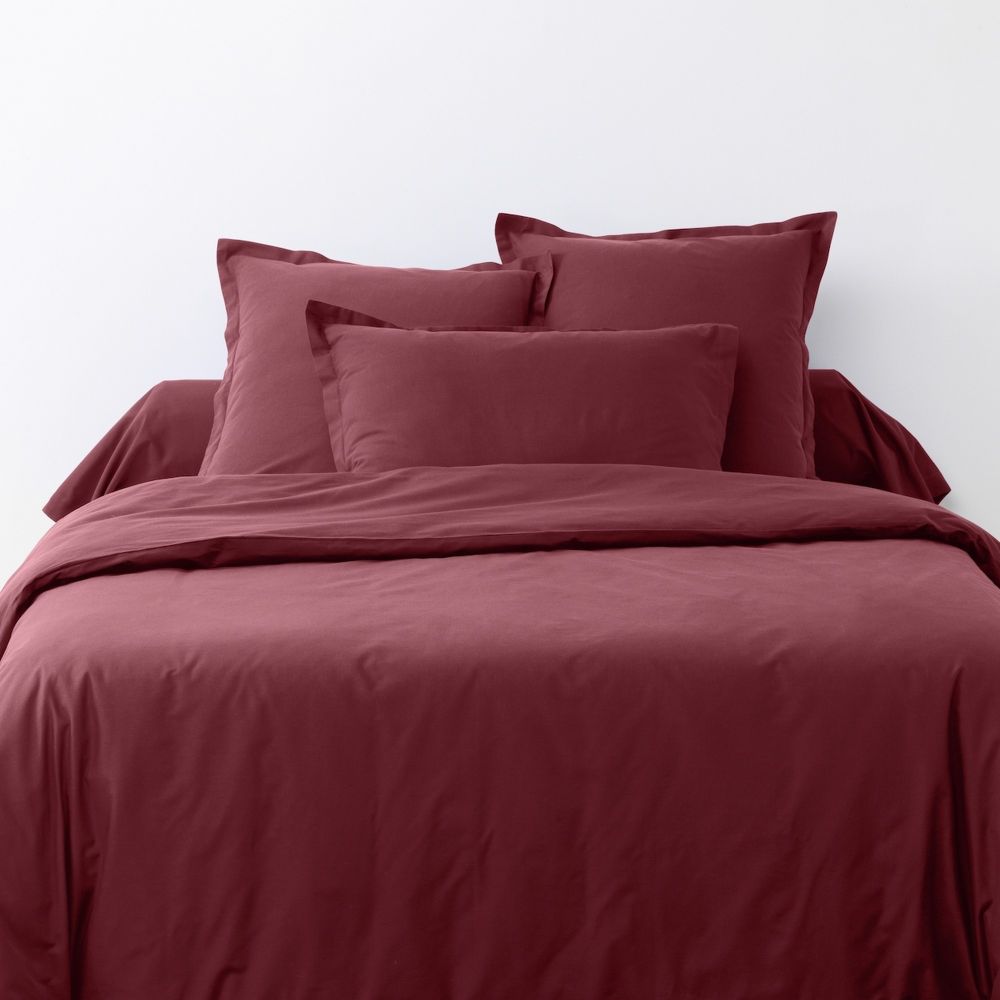 Housse de couette 240x260 cm + 2 taies d'oreiller carrées 100% Coton 57 fils Cerise