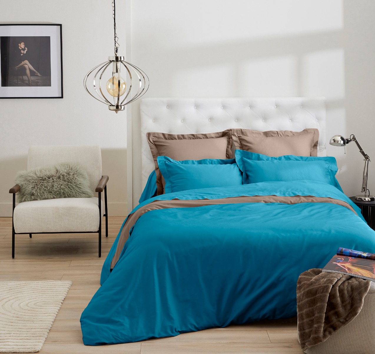 La housse de couette bicolore est très pratique, car elle procure à votre espace personnel une ambiance à la fois colorée et simple.