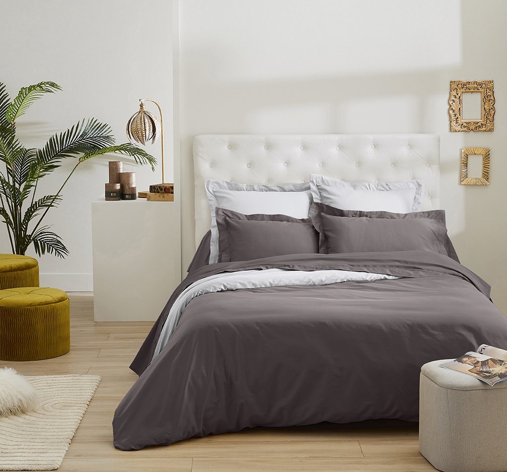 | Libellé | Housse de couette bicolore réversible satin de coton 120 fils - 200x200 - gris fonce blanc |