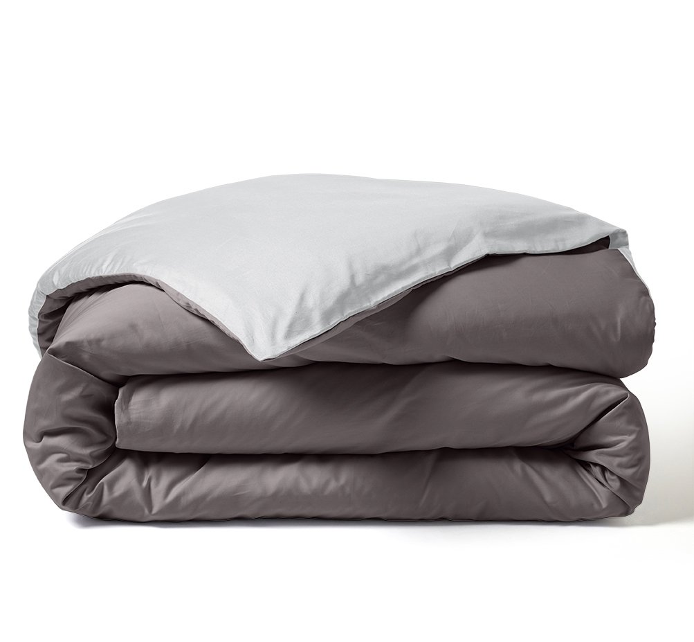 Housse de couette bicolore réversible satin de coton 120 fils - 200x200 - gris fonce blanc