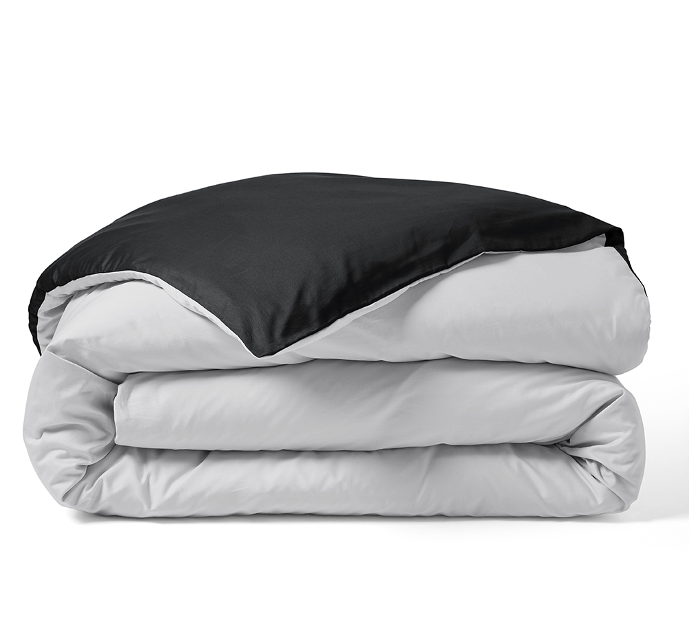 Housse de couette bicolore réversible satin de coton 120 fils - 260x240 - noir acier