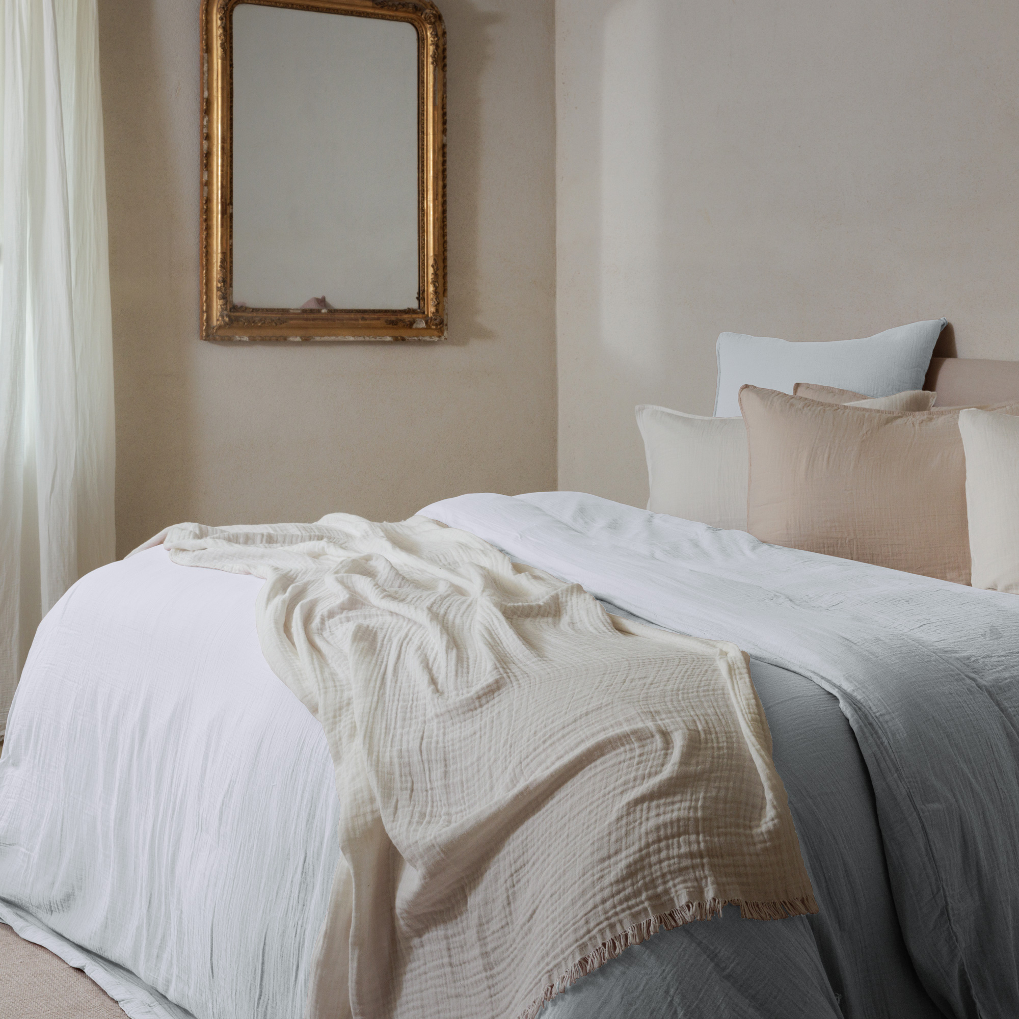 Le motif uni de la housse de couette en mousseline de coton Milos s'intègre harmonieusement à tous les styles de décoration intérieure. Que vous préfériez un look minimaliste ou que vous souhaitiez l'agrémenter de coussins et d'accessoires, cette housse de couette sera la toile parfaite pour votre créativité.