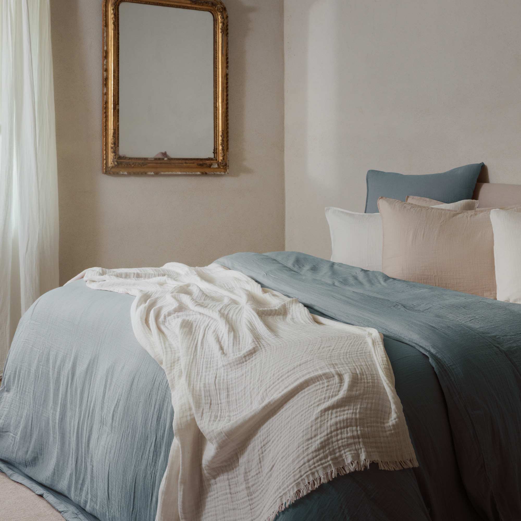 Le motif uni de la housse de couette en mousseline de coton Milos s'intègre harmonieusement à tous les styles de décoration intérieure. Que vous préfériez un look minimaliste ou que vous souhaitiez l'agrémenter de coussins et d'accessoires, cette housse de couette sera la toile parfaite pour votre créativité.
