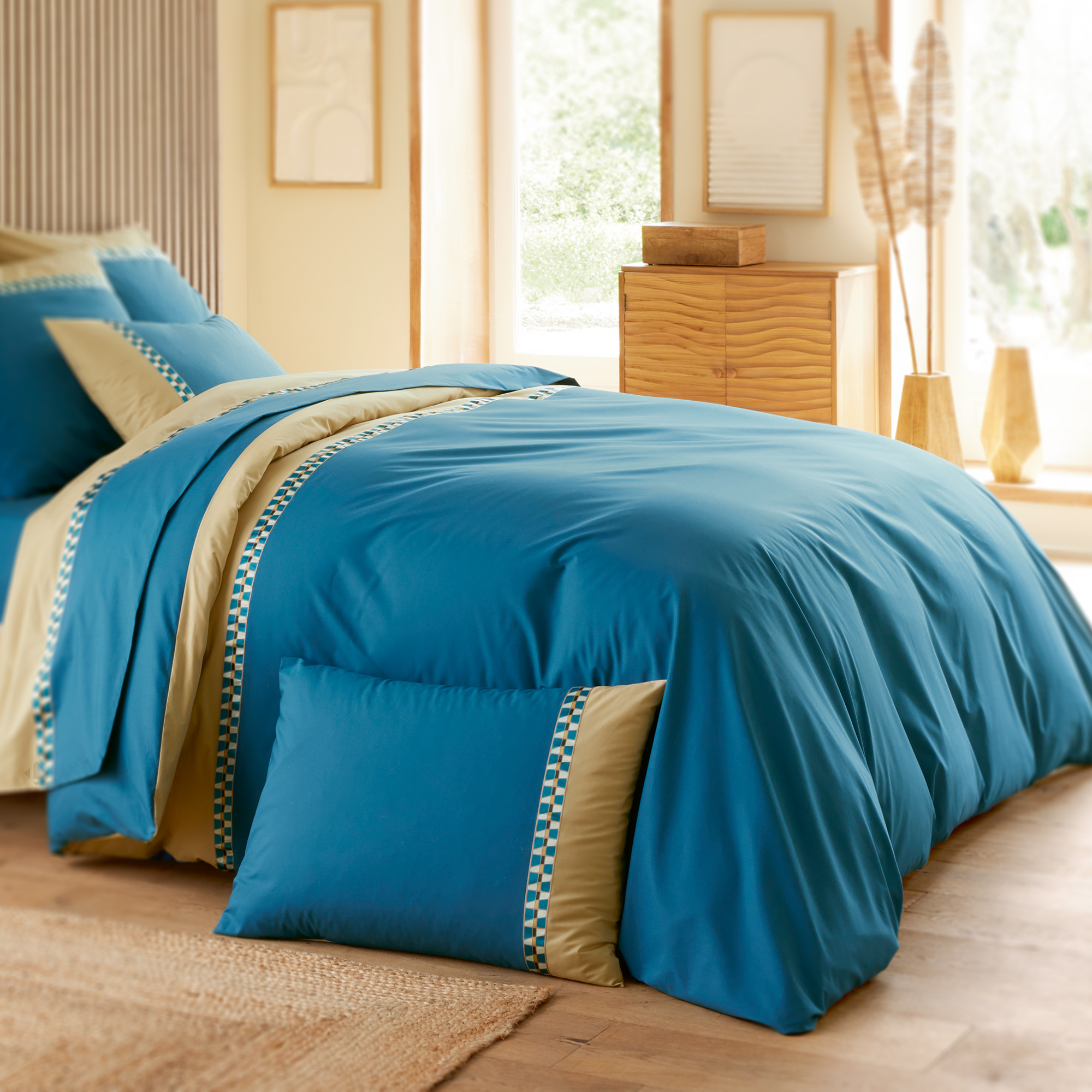 | Plus produit | Achetez la housse de couette en percale de coton LINOA bleu cobalt et beige avec galon. |