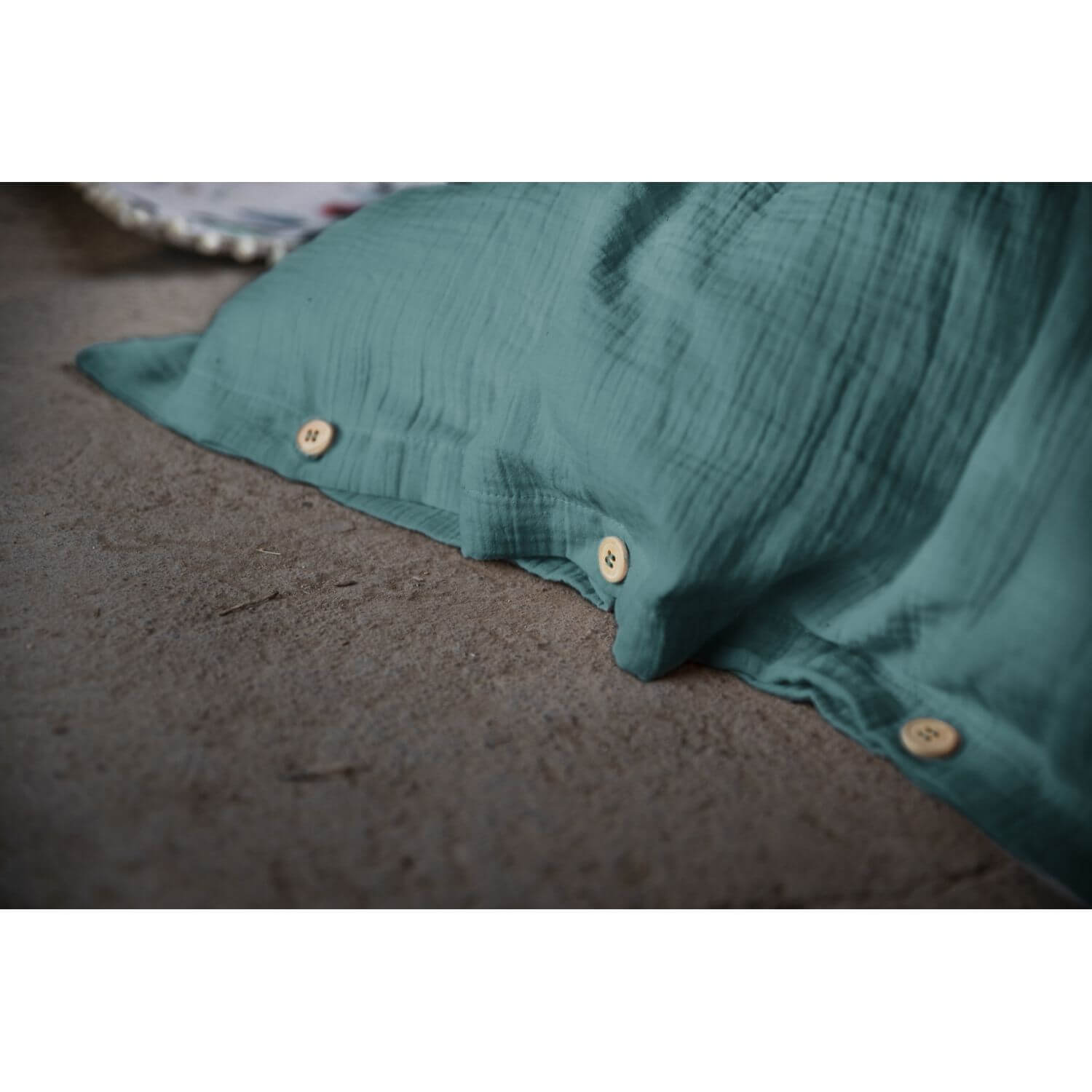 Housse de couette Gaze de Coton 200x200 cm - Ouverture à boutonnières + boutons bois - Composition : 100% Coton - Entretien : Lavable à 60° C (avec des couleurs similaires) - Sèche linge possible