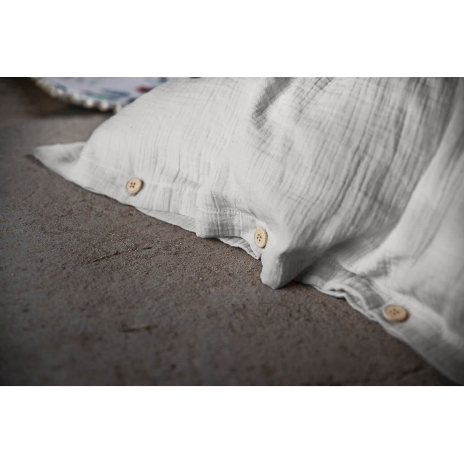 Housse de couette Gaze de Coton 260 x 240 cm - Ouverture à boutonnières + boutons bois - Composition : 100% Coton - Entretien : Lavable à 60° C (avec des couleurs similaires) - Sèche linge possible
