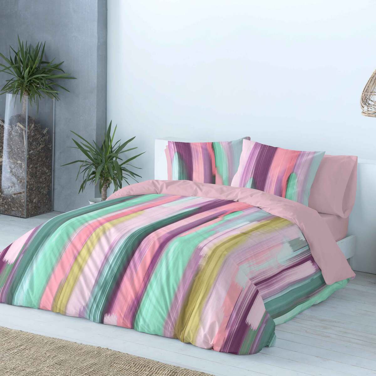 Housse de couette LOANE rose/violet/vert 140x200c