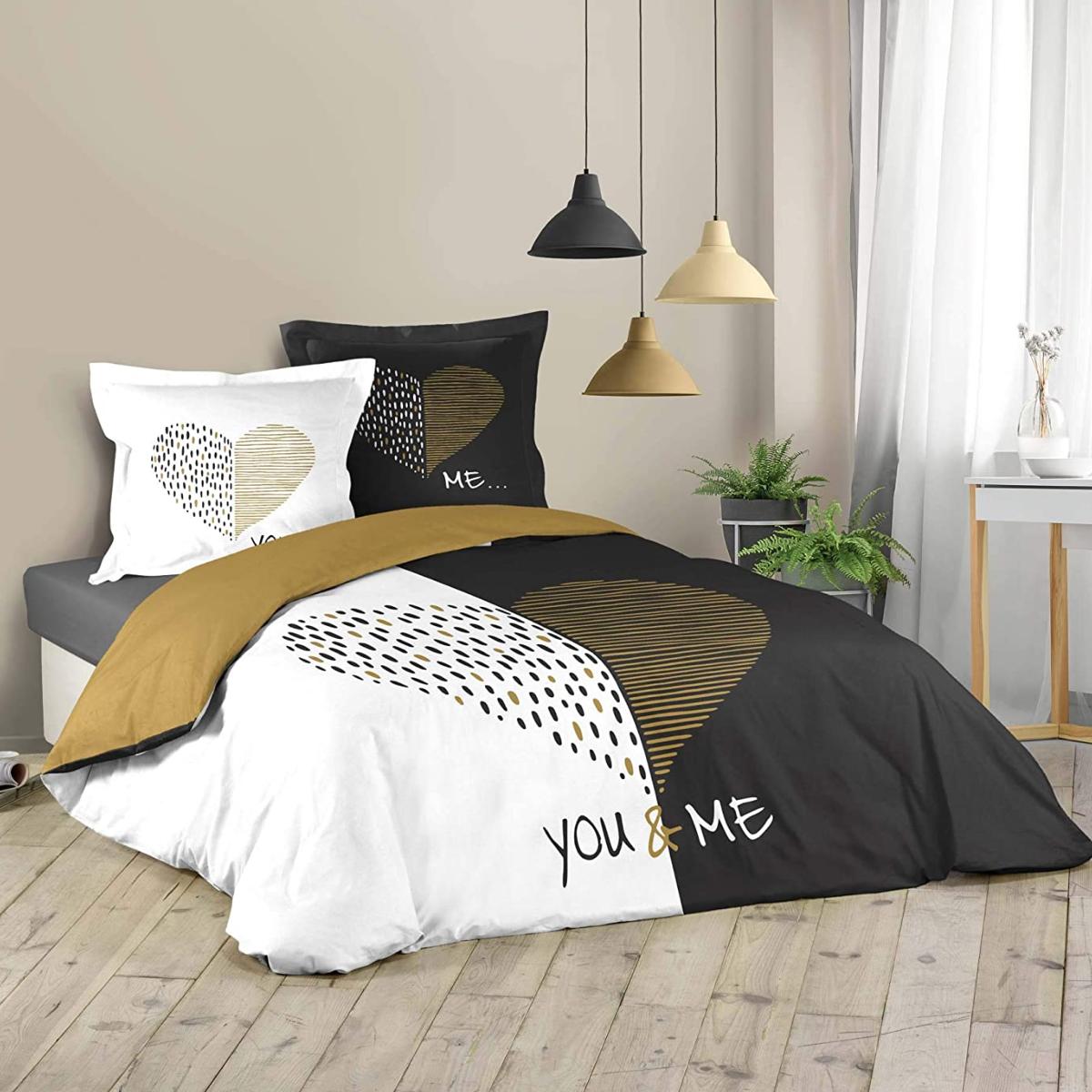 Housse de couette Miu Love, Noir/Or, 240x260cm, 2 personnes, 100% Coton