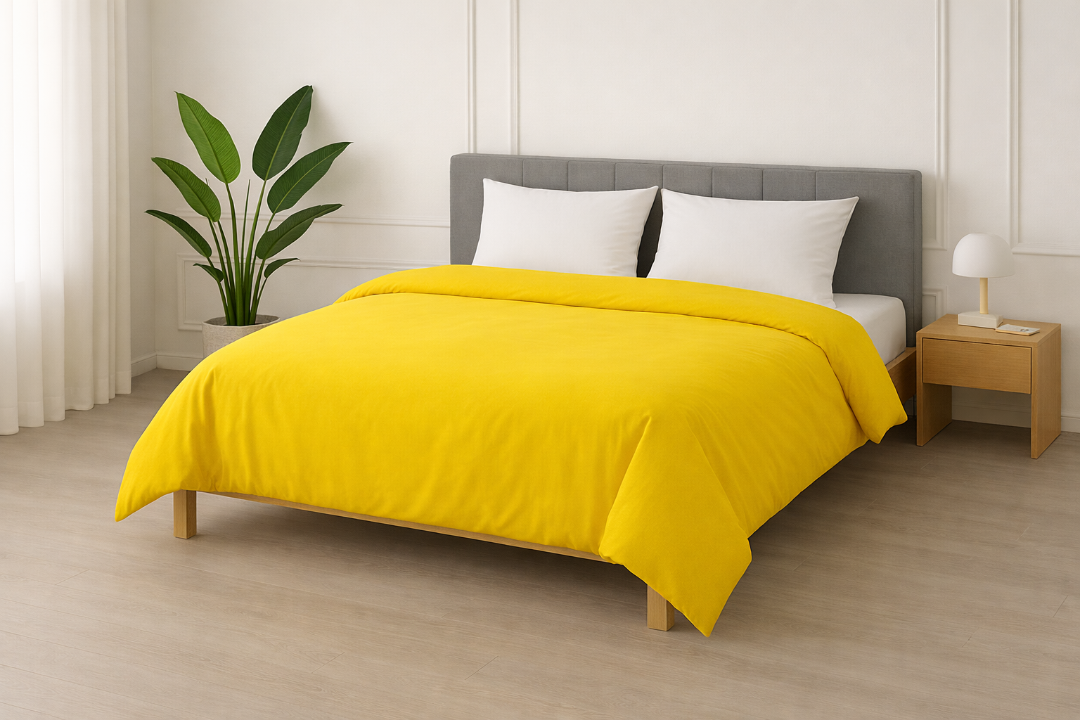 Housse de couette Polycoton Jaune vif - 2 personnes 220 x 240 - Toutes saisons - MORTREUX