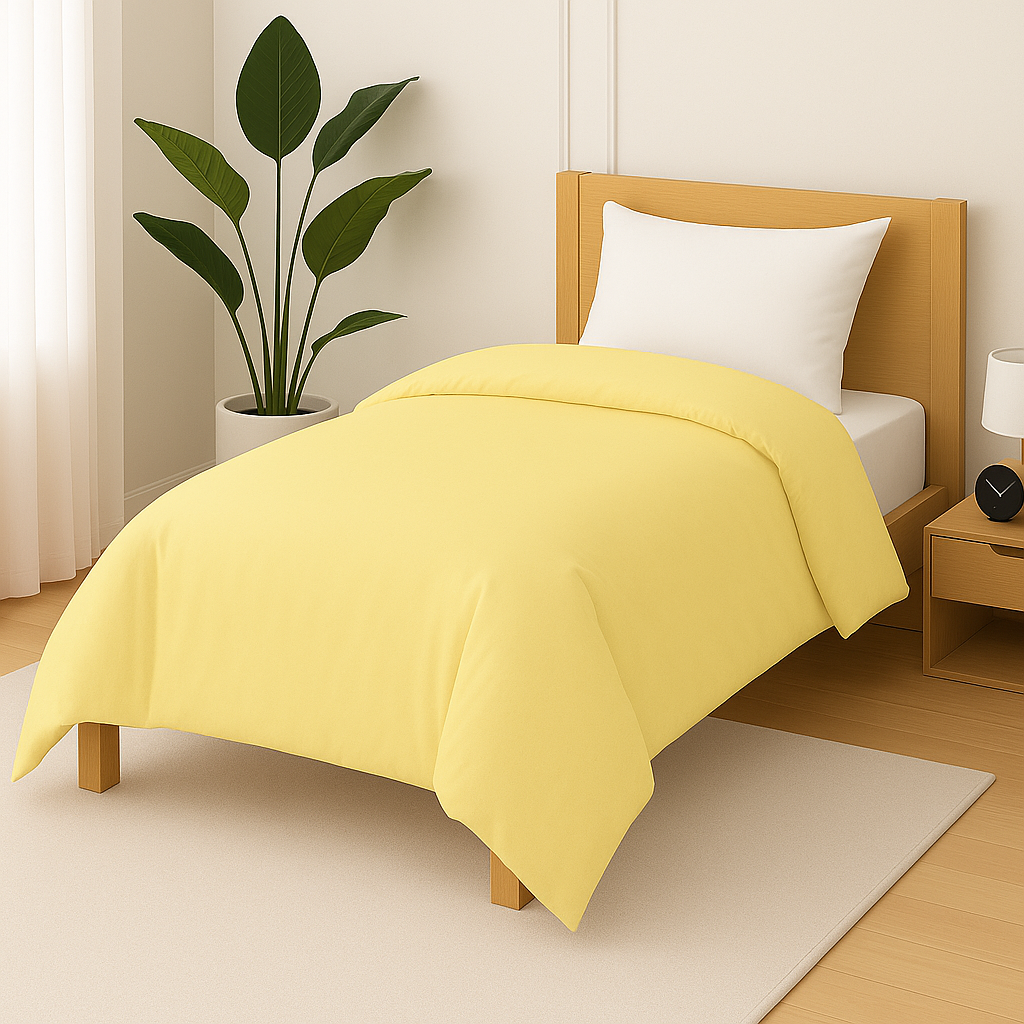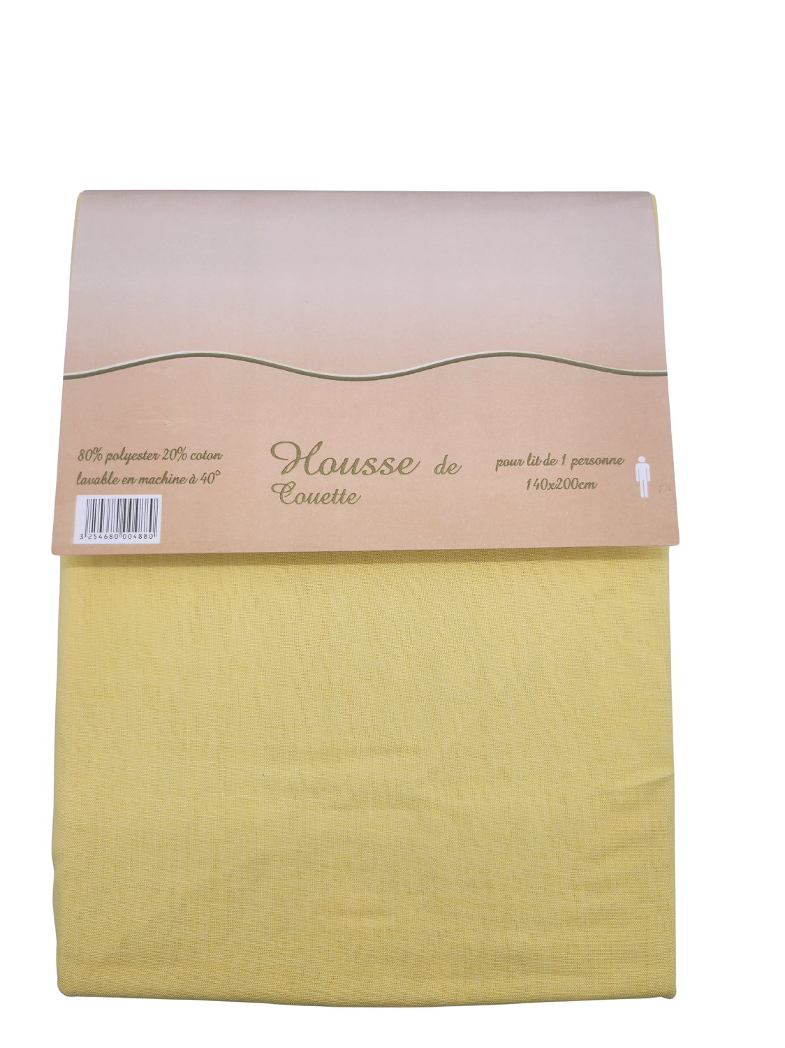 Housse de couette - 1 personne 140 x 200 Colori : Paille Tissu : Polycoton (80% Polyester + 20% Coton) Fermeture Portefeuille pratique et facile Vendue sans les taies d'oreillers Lavable à 40°C
