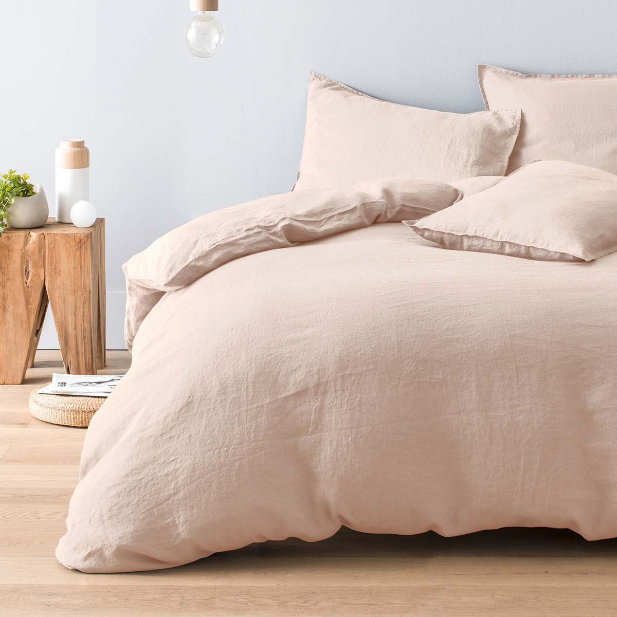 Housse de couette pur lin lavé français MILANO ROSE PALE