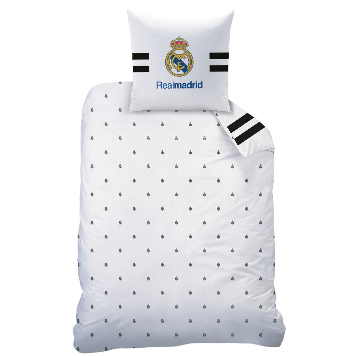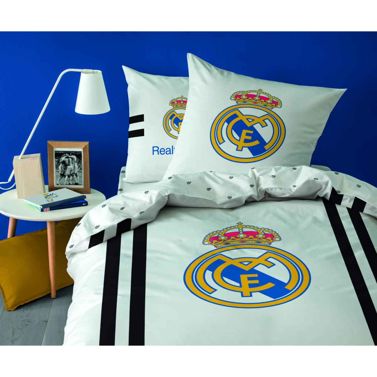 Housse de couette en 100% coton, tissage très serré et de haute qualité.Motif : Couleurs et logo officiels du célèbre Club Real Madrid