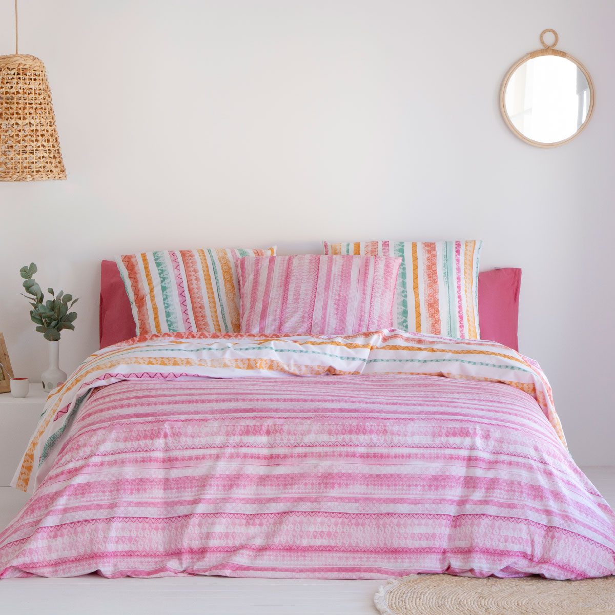 | Libellé | Housse de couette réversible en coton TRIBE rose |