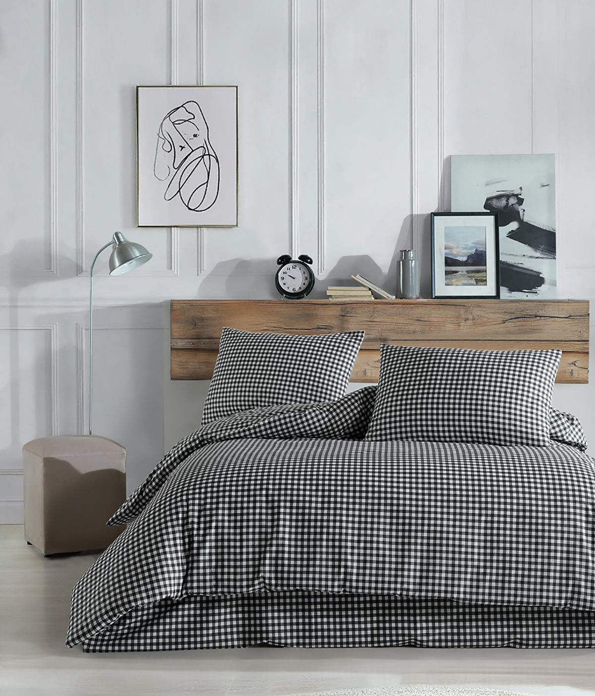 Housse de couette + taie(s) oreiller "Vichy noir" 100% coton