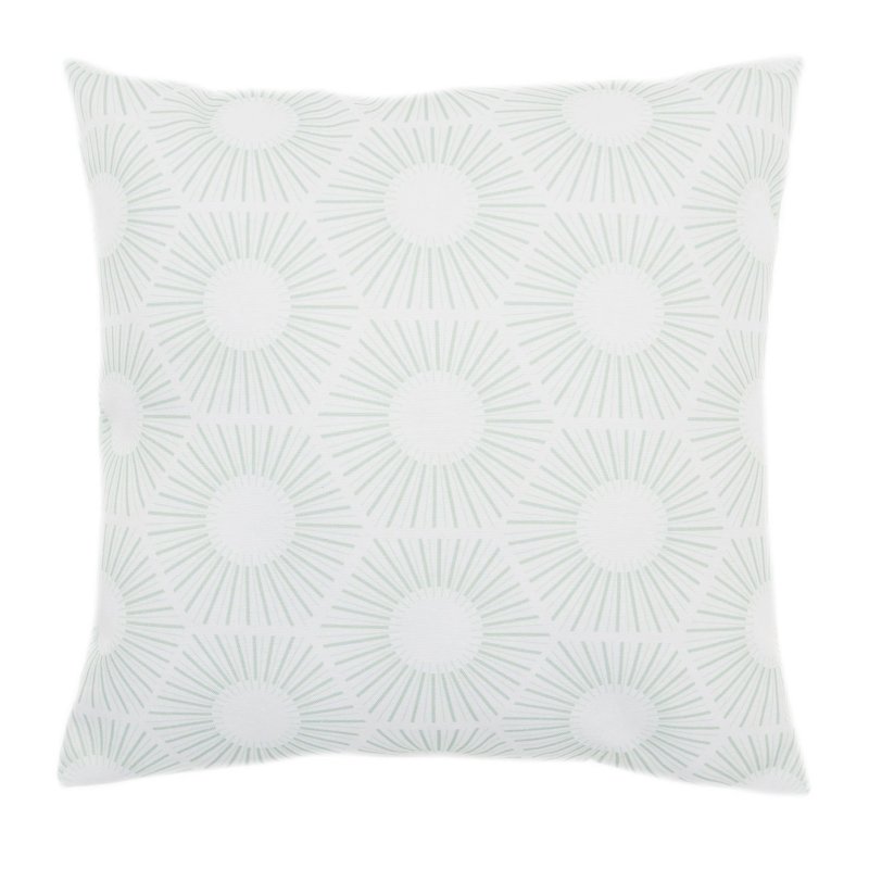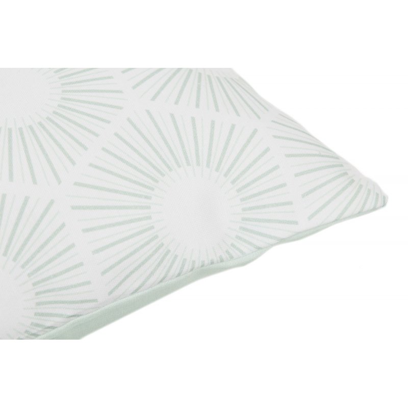 Housse de coussin 40 x 40 cm imprimé motif solaire vert. Une housse au design chaleureux, parfaite pour une ambiance déco claire et reposante.
