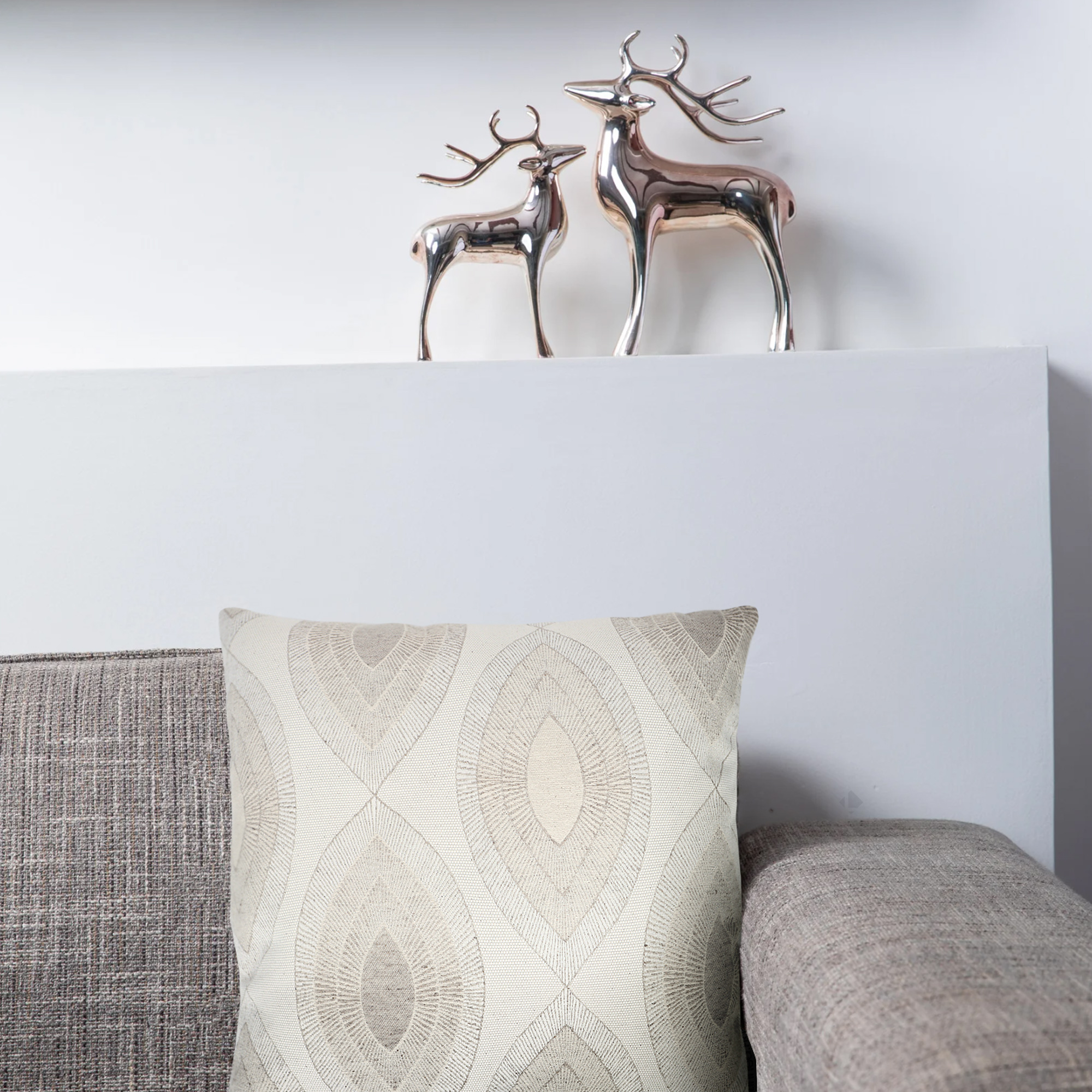 Housse de coussin 80x100, la collection MAMA Ecru/Lin met en scène un all-over de forme géométrique ethnique dans des tons de écru et lin, pour habiller votre intérieur avec caractère.