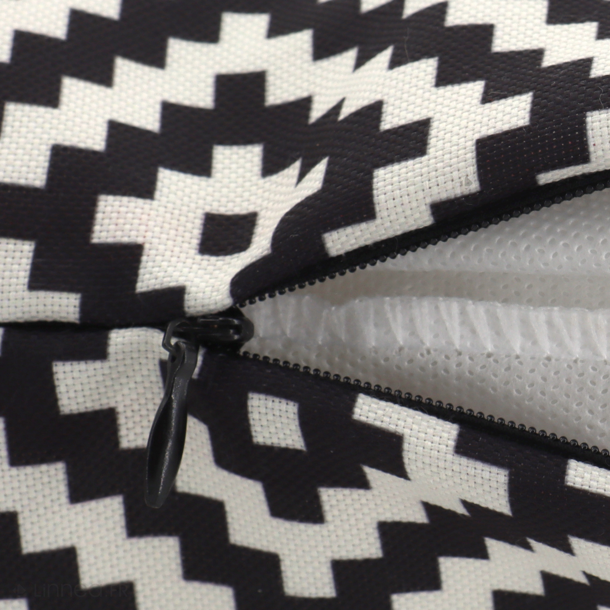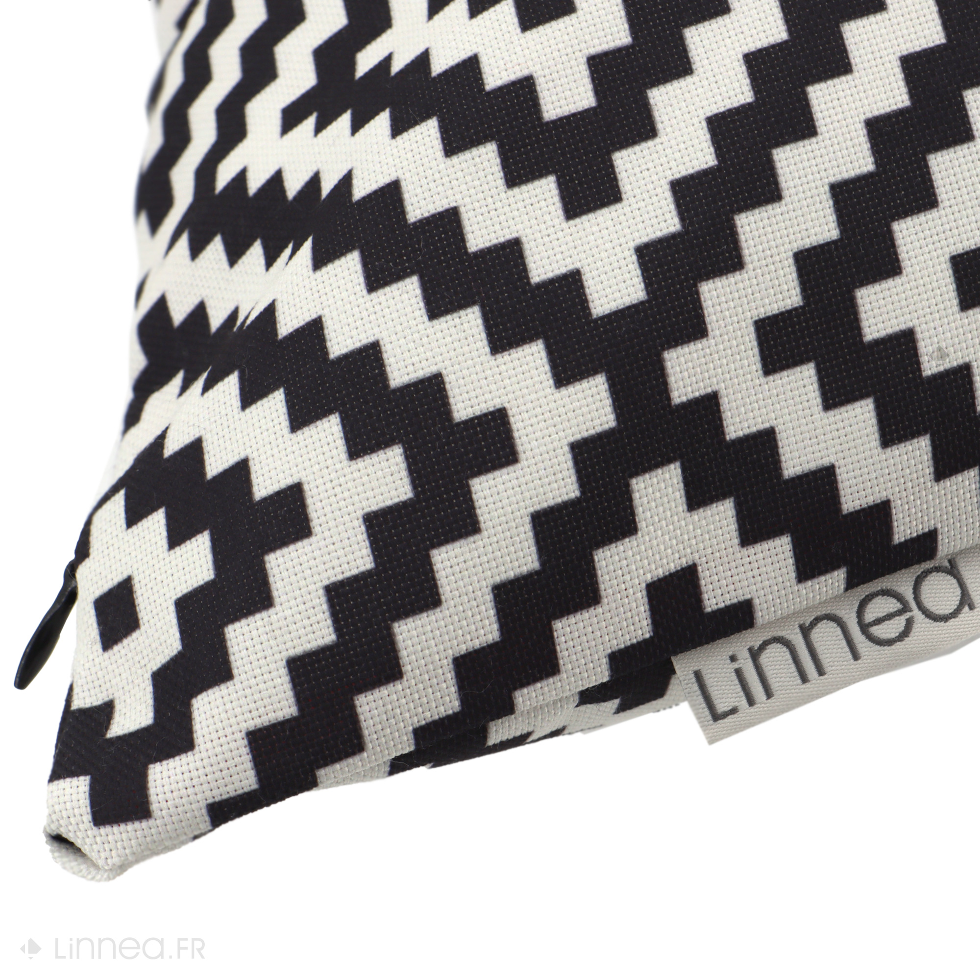 | Plus produit | Housse de coussin dézippable de 50x50 cm collection PANAMA Noir Faite à la main avec passion et souci du détail, deux faces identiques toile déperlante. Housse déhoussable finition fermeture à glissière invisible, livrée sans garnissage intérieur |