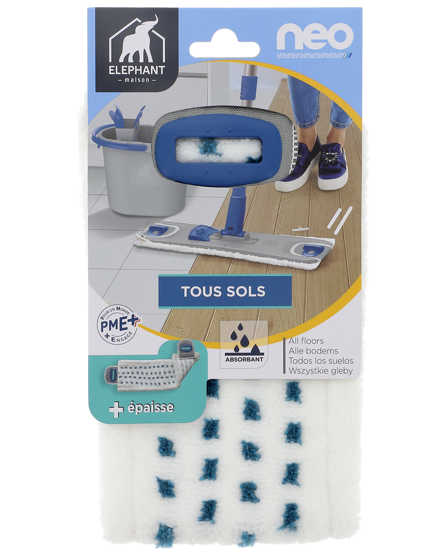 Vous n’avez pas envie de vous mouiller les mains pour nettoyer vos sols ? Grâce à son système d’essorage breveté, le balai NEO3 est LA SOLUTION facile, rapide et efficace pour nettoyer toutes les surfaces sans mettre vos mains dans l’eau ! Renouvelez la recharge de votre balai à plat NEO3 : en microfibre, elle est idéale pour nettoyer, sans détergent, tous les sols de votre maison. Ses fibres bleues permettent de nettoyer en profondeur sans rayer.
