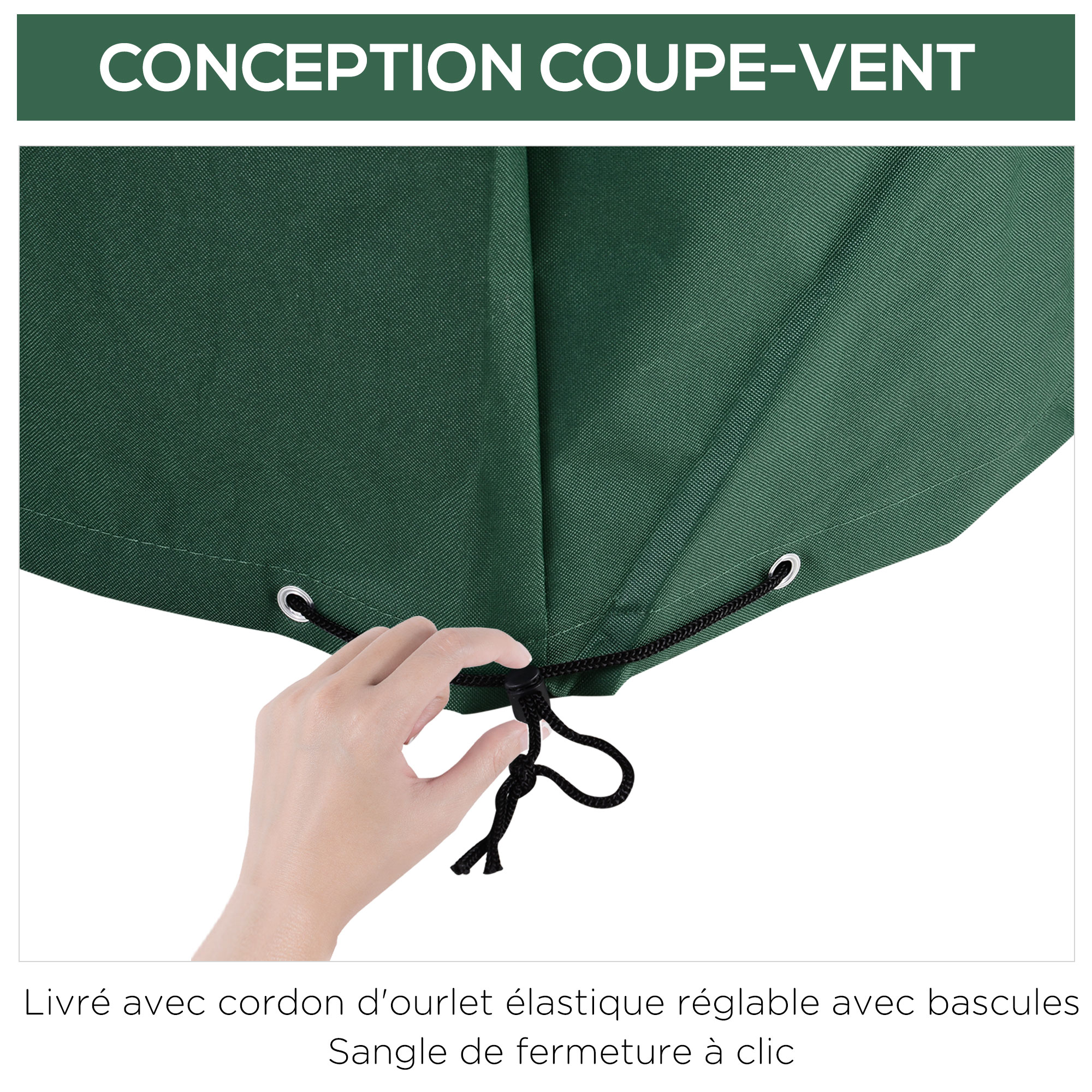 Vous souhaitez augmenter la durée de vie de votre mobilier de jardin? Oui? Cette grande housse de protection très résistante (toile de bâche 600D Oxford) est le produit qu'il vous faut! Etanche avec son revêtement PE, elle sera la protection idéale contre les intempéries, l'humidité, les UV ou la poussière. Facile d'entretien et d'utilisation, vous ne regretterez pas votre achat. Son coloris vert sapin s'intégrera parfaitement et en toute discrétion dans votre environnement.