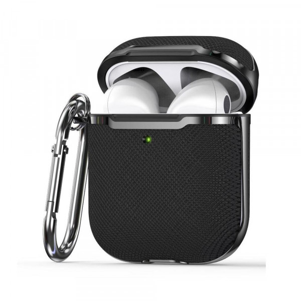 Libellé Housse de protection pour écouteurs Bluetooth en tissu plaqué + housse de protection en PC pour AirPods 1 / 2 (noir)
