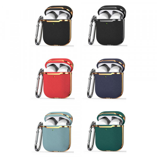 Housse de protection pour écouteurs Bluetooth en tissu plaqué + housse de protection en PC pour AirPods 1