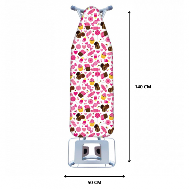 - Dimension : Taille standard ajustable à tous les stables ; 140x50cm. L'élastique de la housse lui permet de s'adapter à la grande majorité des planches à repasser.