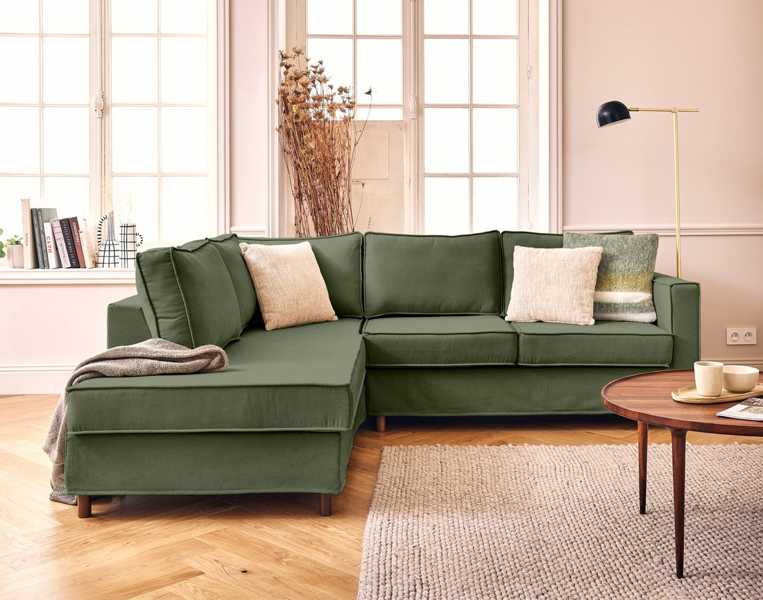 Jake : Housse en tissu pour canapé d'angle gauche 5 places