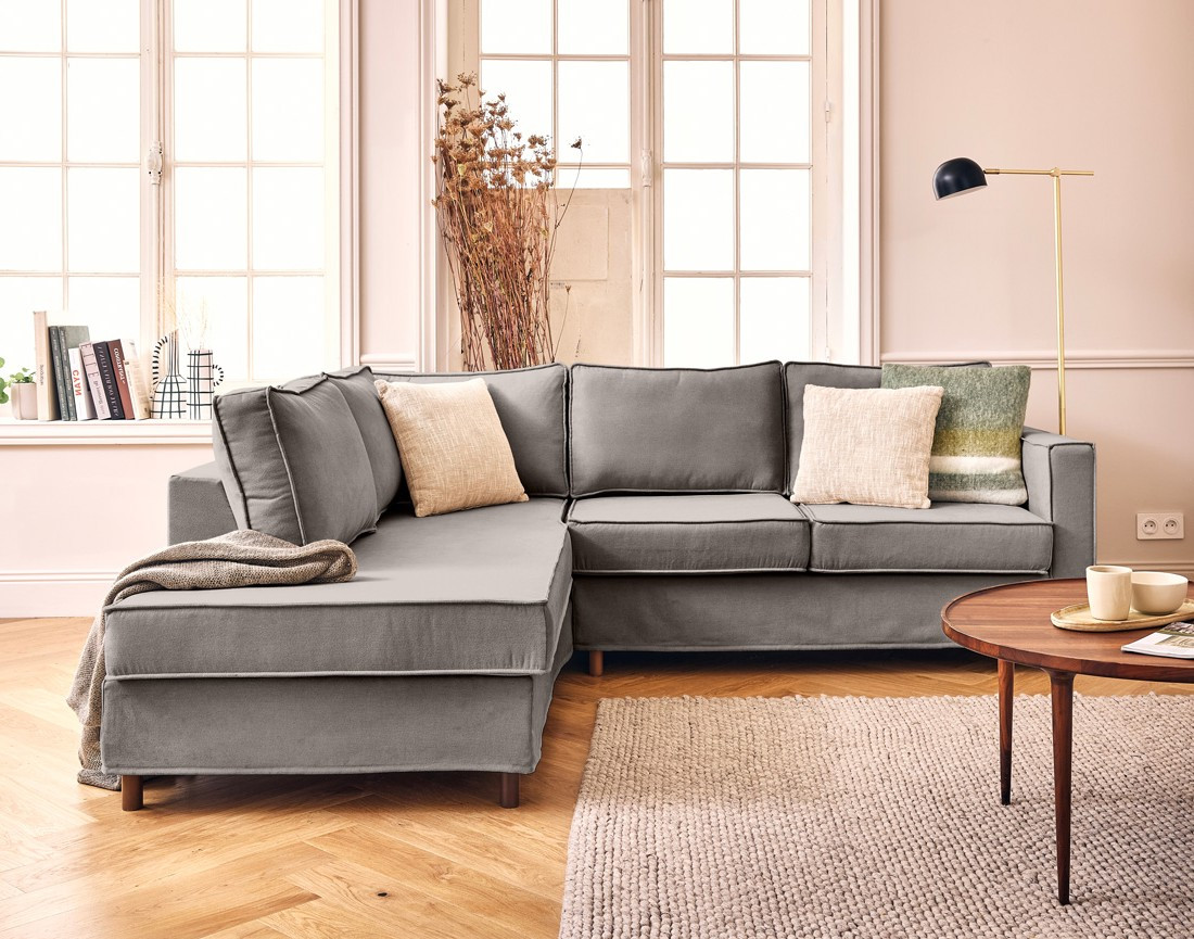 Jake : Housse en tissu pour canapé d'angle gauche 5 places