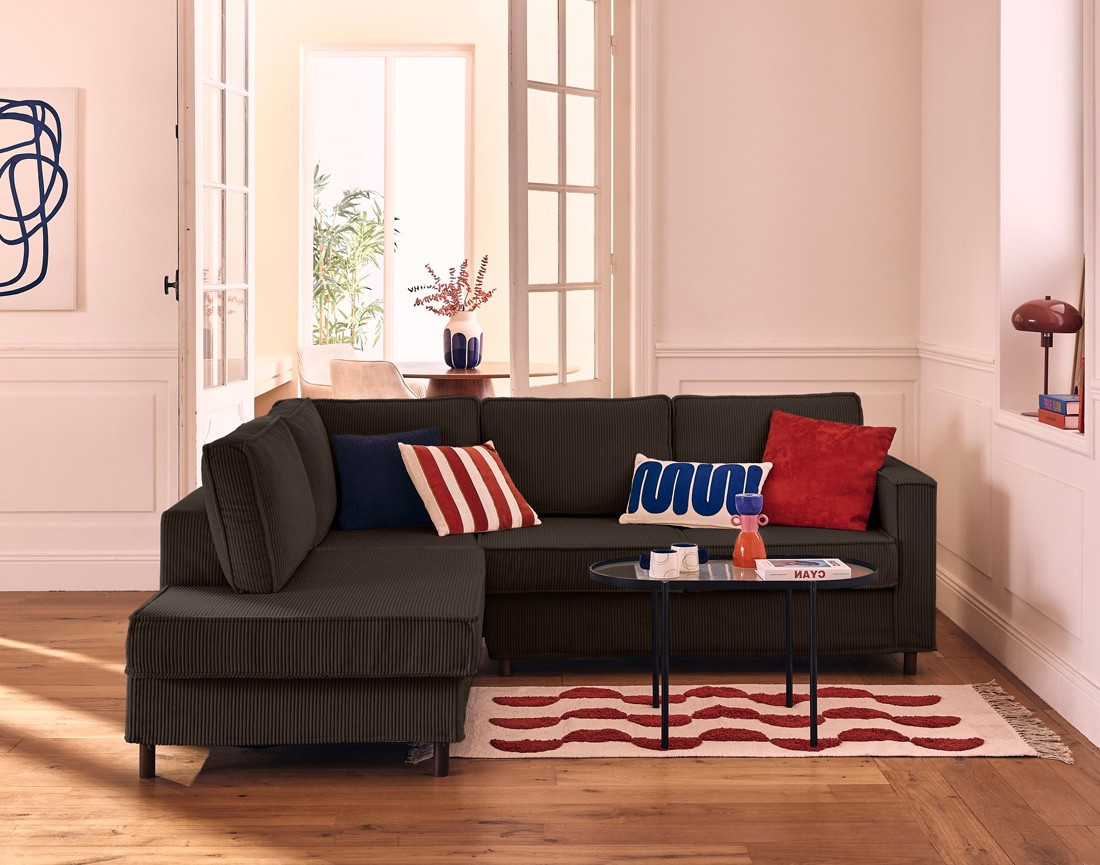 Jake : Housse en velours côtelé pour canapé d'angle gauche 5 places