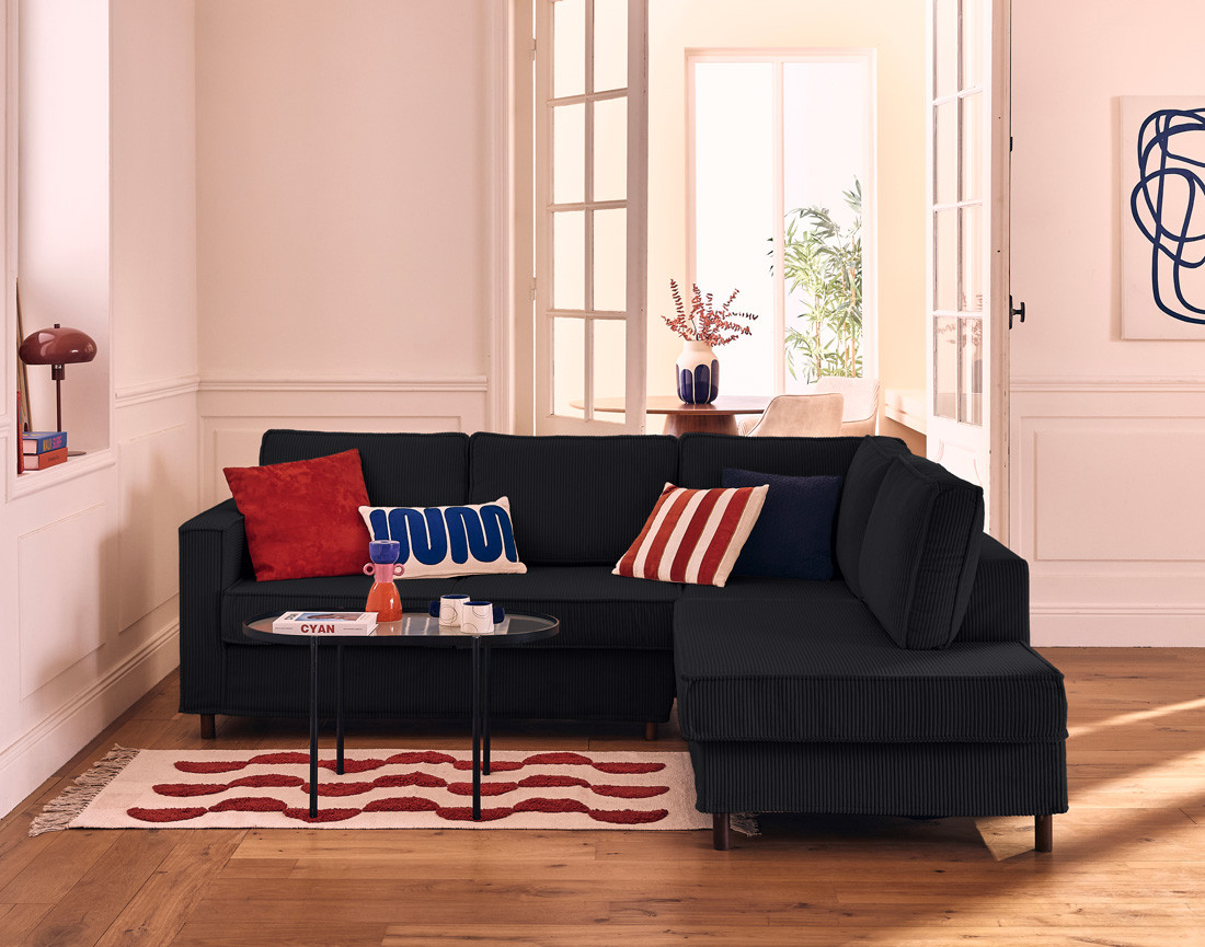 Jake : Housse en velours côtelé pour canapé d'angle droit 5 places