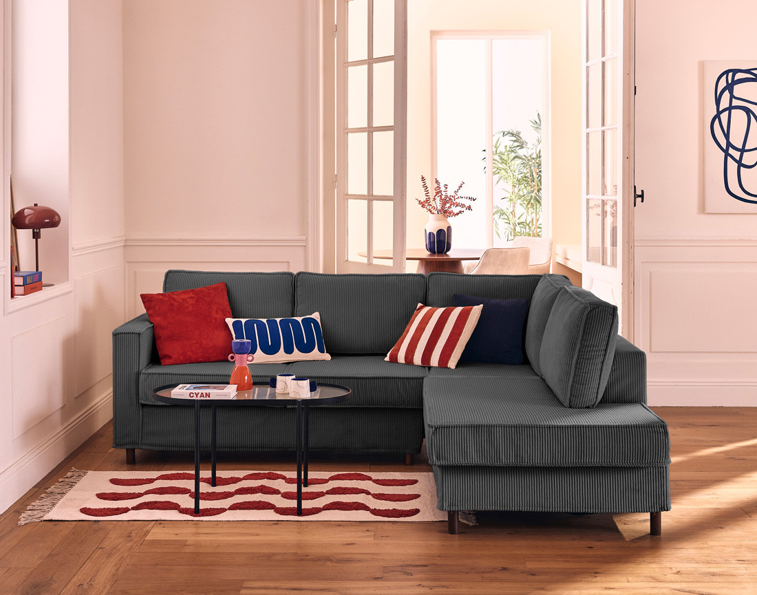 Housse en velours côtelé pour canapé Jake déhoussable d'angle droit 5 places