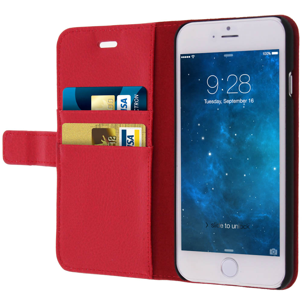 Housse a clapet folio rouge avec fermeture magnetique pour iPhone 6 et 6s. Concu en eco-cuir, cet etui assure une protection integrale contre les chocs et les rayures du quotidien. Une housse equipee de rangements pour carte et de la fonction support.