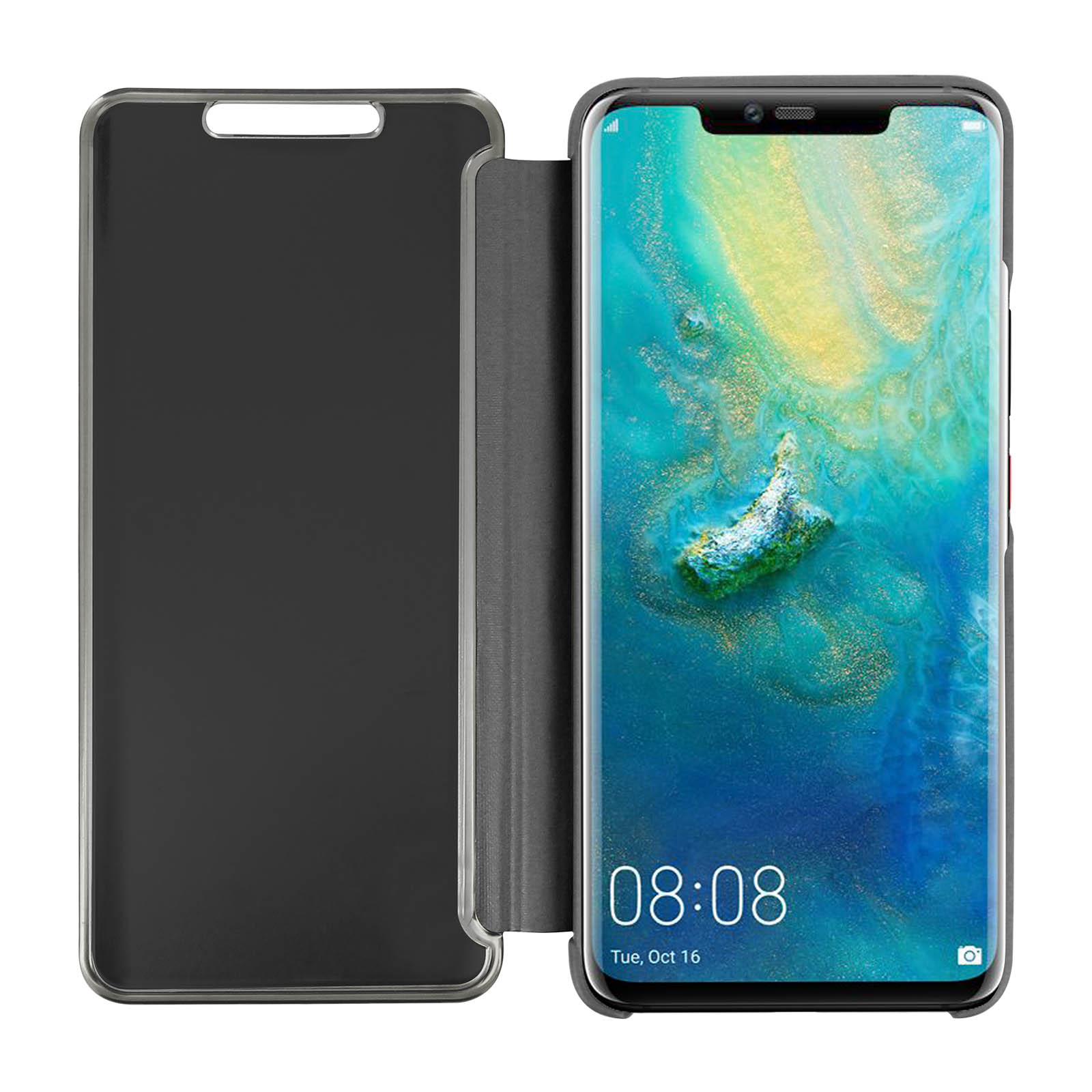 Housse folio avec un design effet miroir Huawei Mate 20 Pro pour la protection intégrale de votre mobile. Clapet translucide pour voir vos notifications quand votre écran s'allume et se transforme en miroir en mode veille. Fonction support intégré.