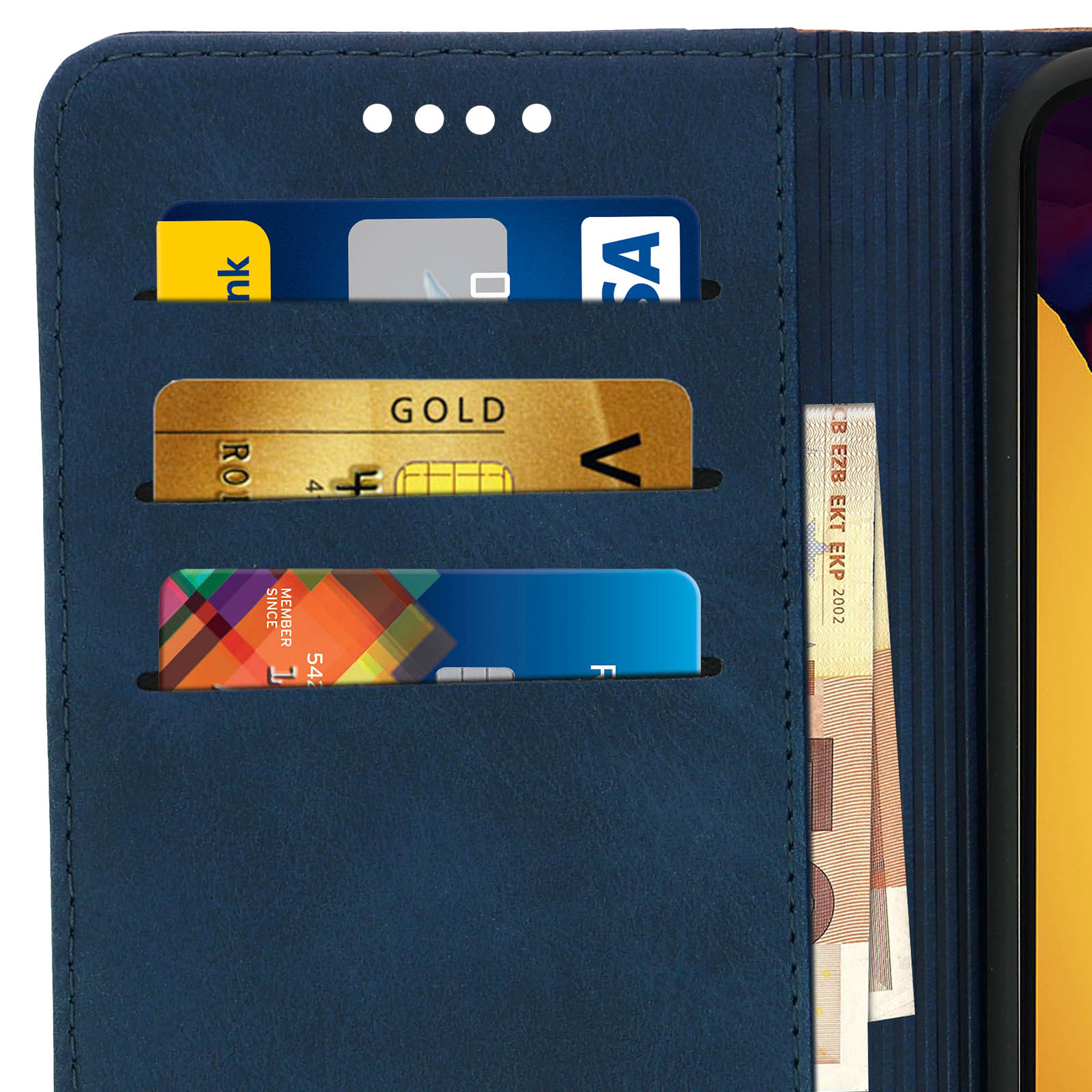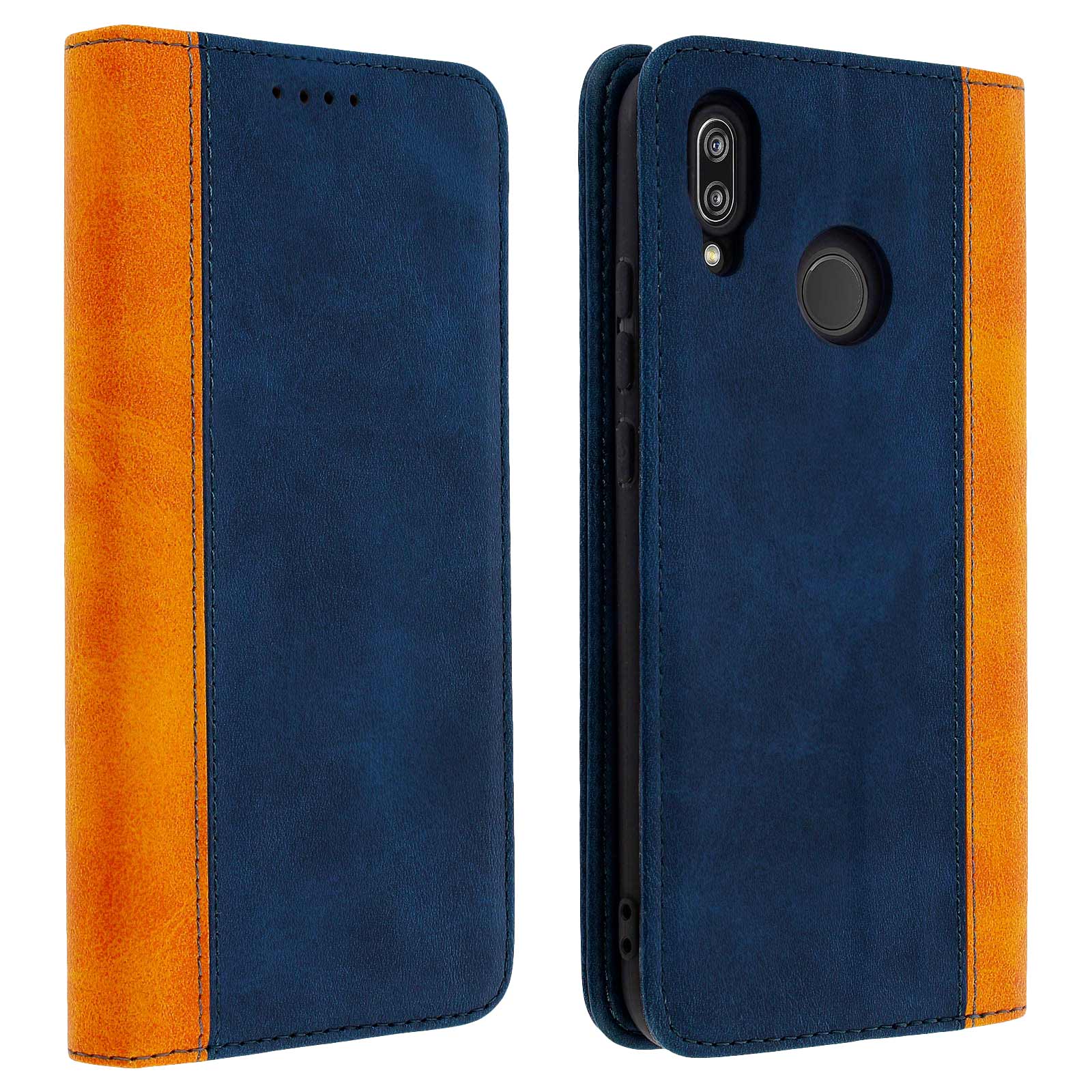 Etui portefeuille en éco-cuir pour Huawei P20 Lite. Doté d'une finition bicolore et patinée surpiquée. Espaces de rangement pour cartes et billets. Fonction support . Coque de maintien en silicone. Fermeture aimantée. Fonctionnalités accessibles.