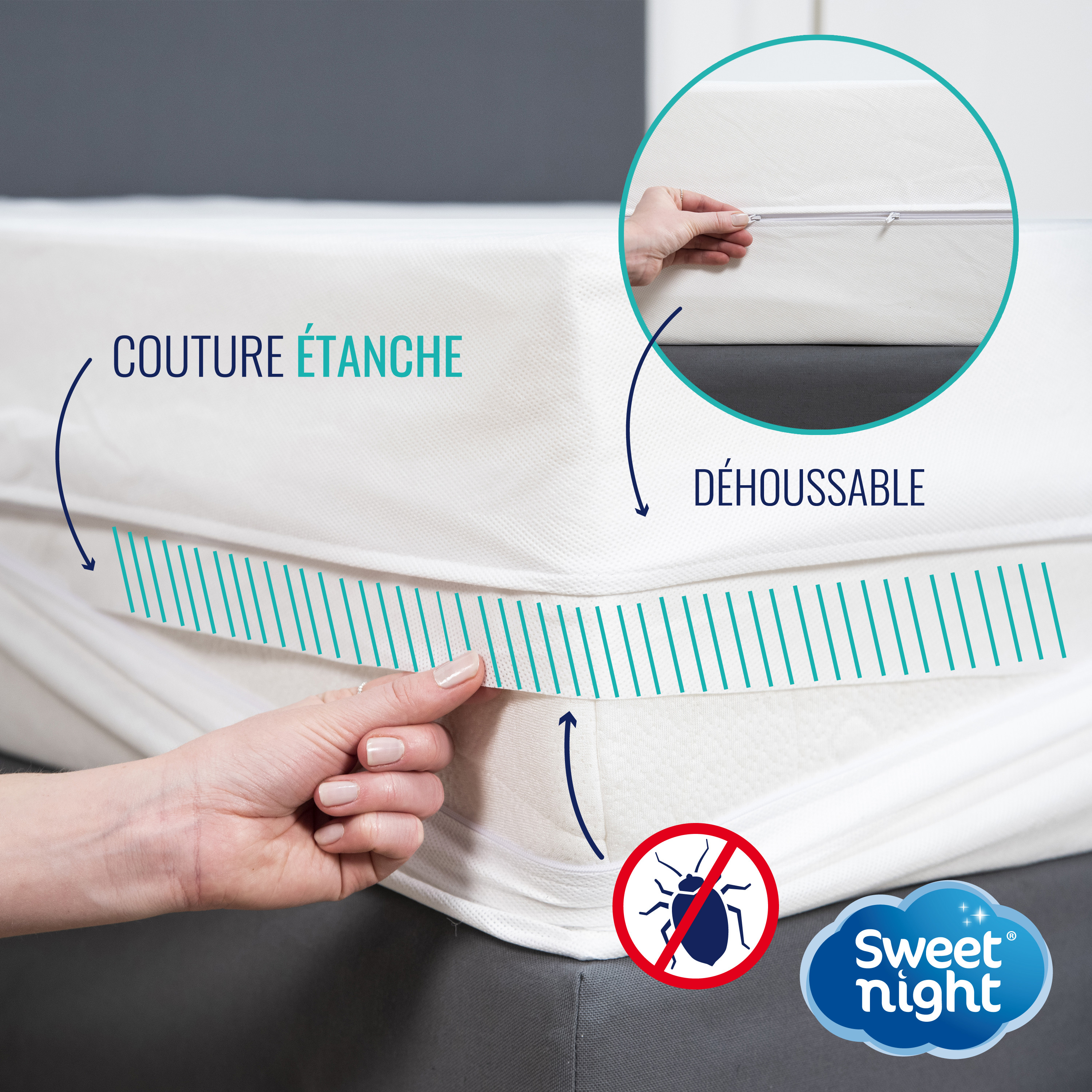 Alliée indispensable de votre sommeil et de votre hygiène de vie, cette housse intégrale pour matelas anti-punaises de lit vous accompagnera dans vos voyages, vos locations de vacances, vos déplacements.