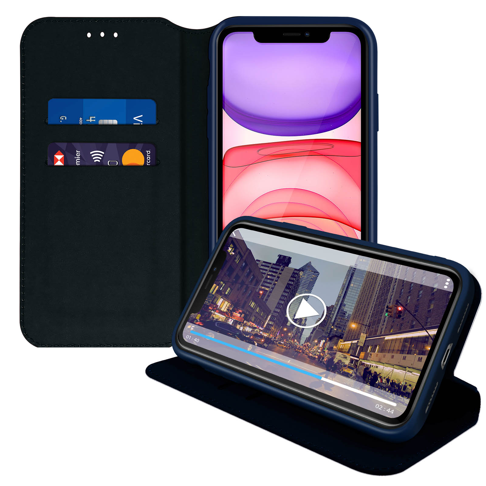 Housse iPhone 11 Étui Folio Portefeuille Fonction Support bleu nuit