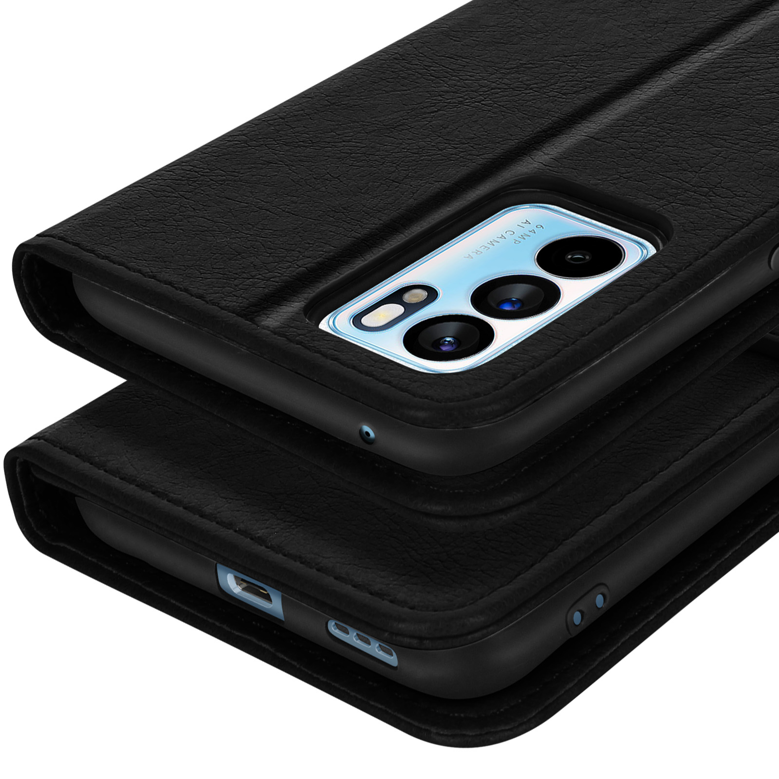• Étui Noir avec un porte-cartes spécialement conçu pour votre Oppo Reno 6 5G