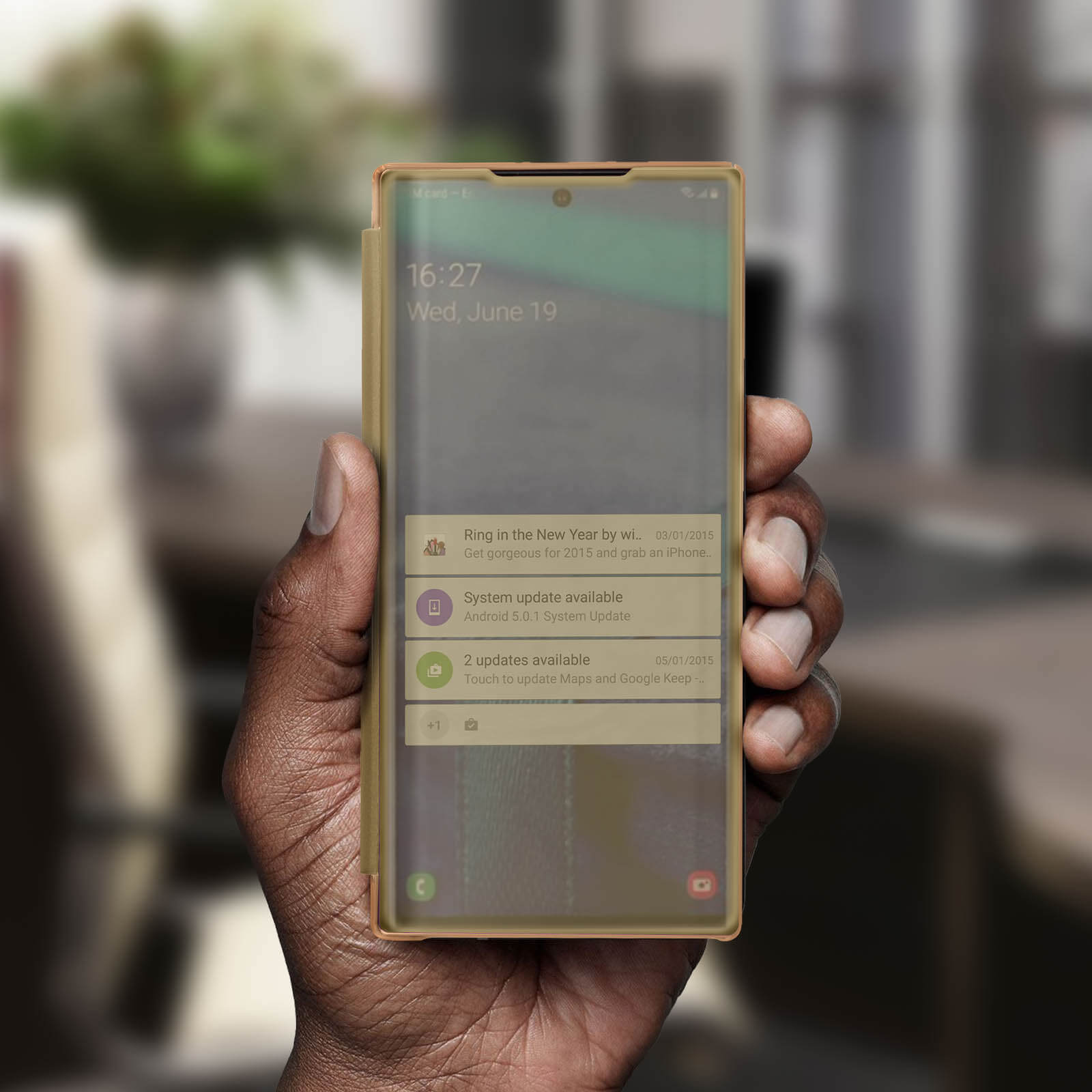 Housse folio avec un design effet miroir pour Samsung Galaxy Note 10 pour une protection intégrale. Clapet translucide pour voir vos notifications quand votre écran s'allume et se transforme en miroir en mode veille. Fonction support.