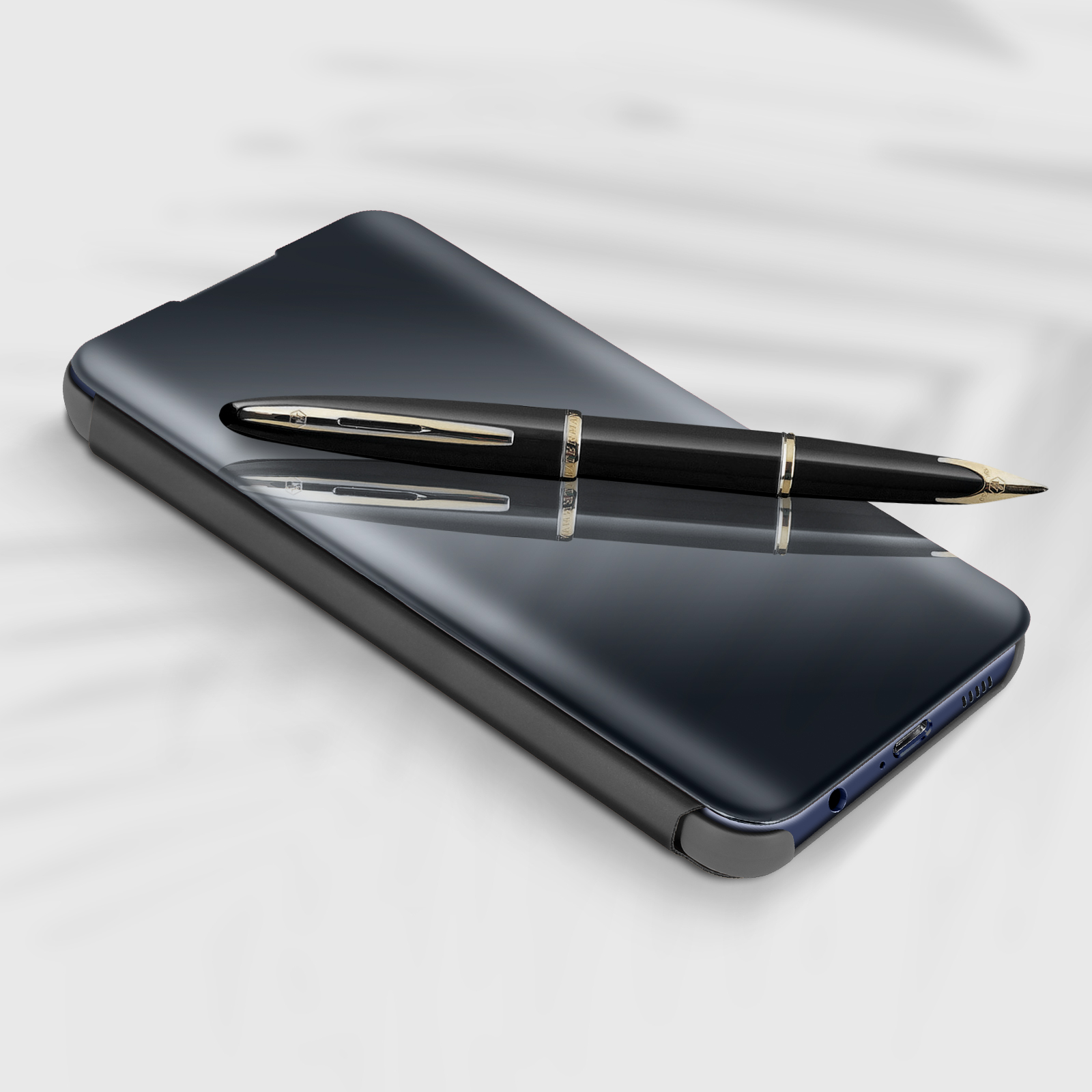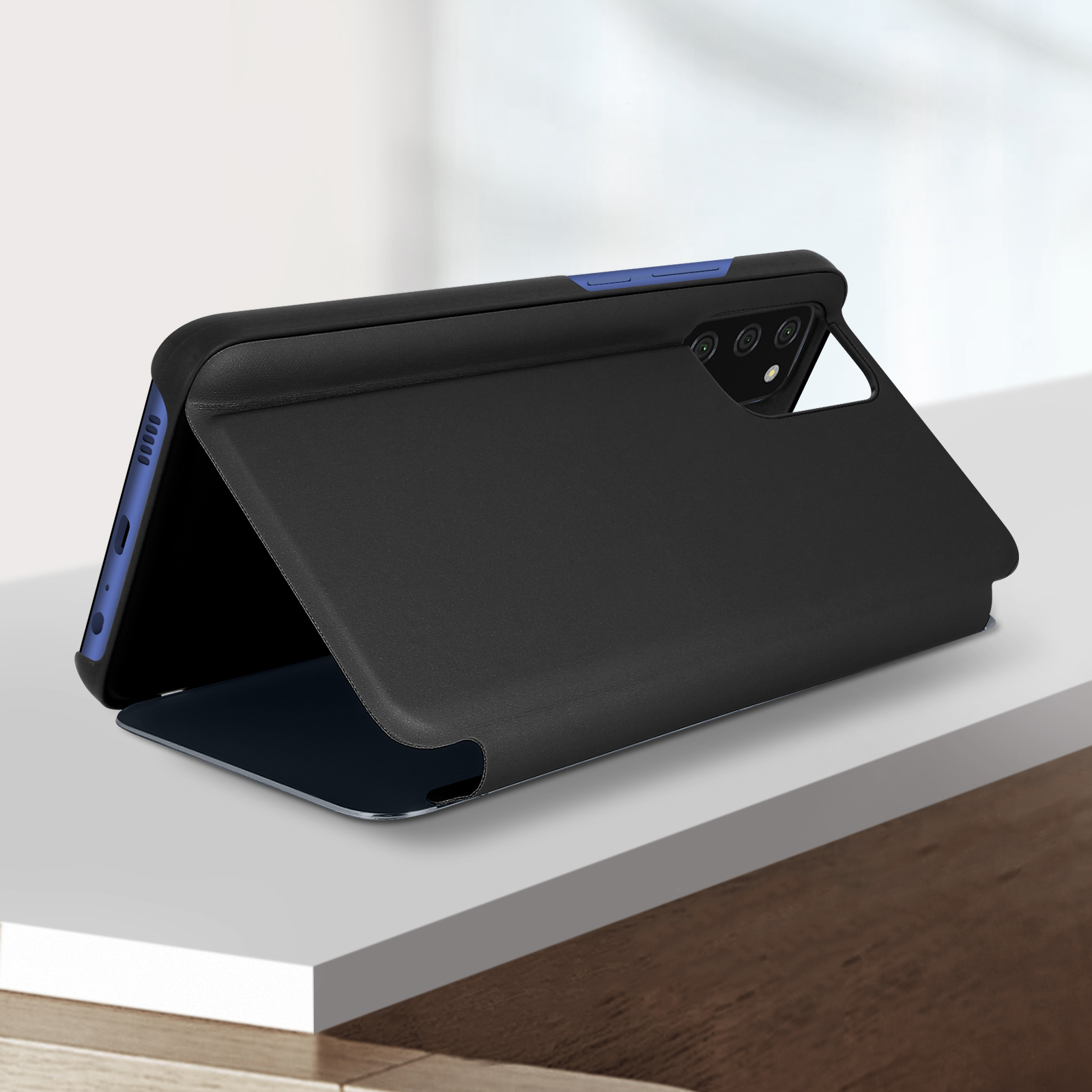Housse Samsung Galaxy A03s Clapet translucide Design Miroir Support Vidéo noir