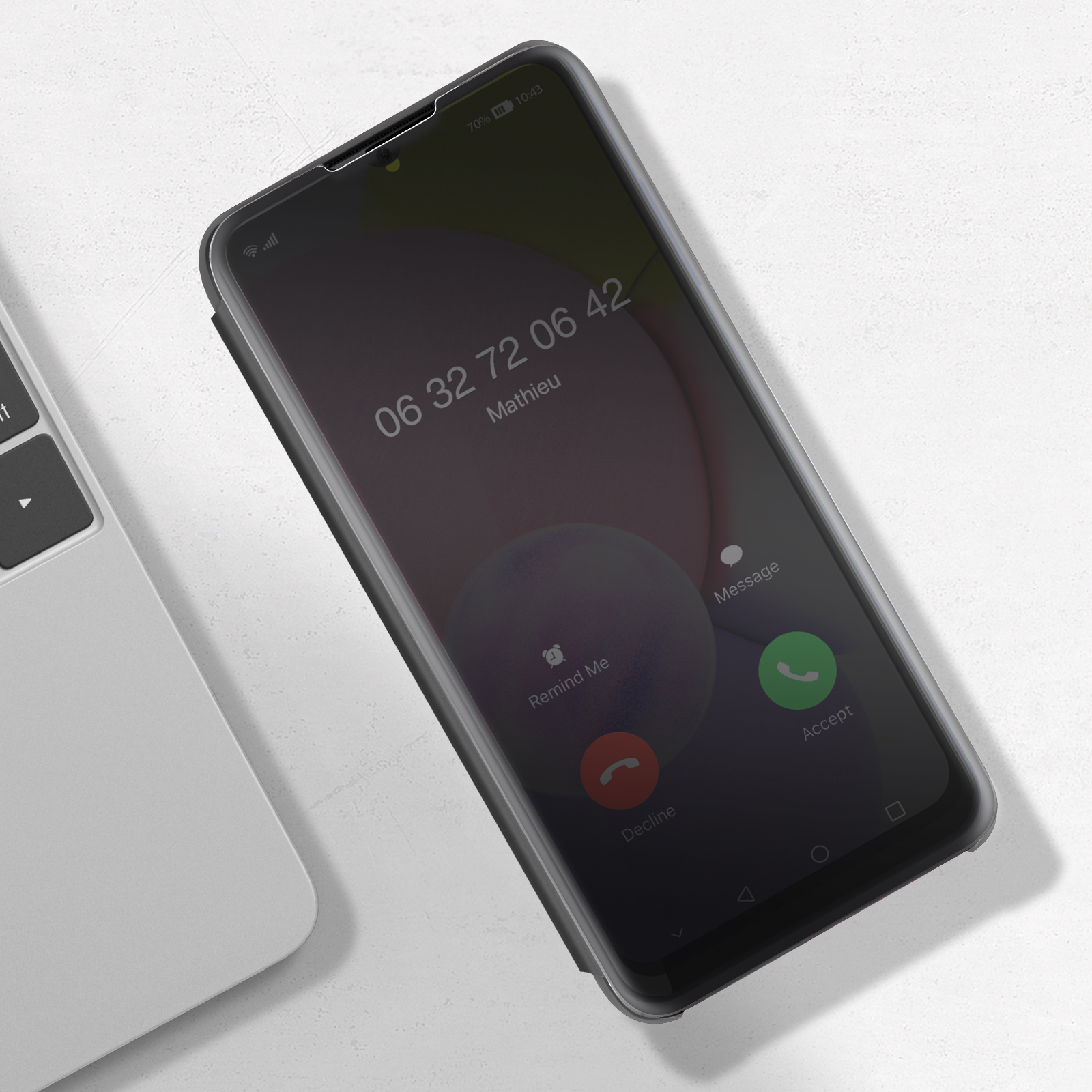 Housse avec un design effet miroir Samsung Galaxy A03s, une protection intégrale. Clapet translucide pour voir vos notifications quand votre écran s'allume et se transforme en miroir en mode veille. Fonction support. Fonctionnalités accessibles.