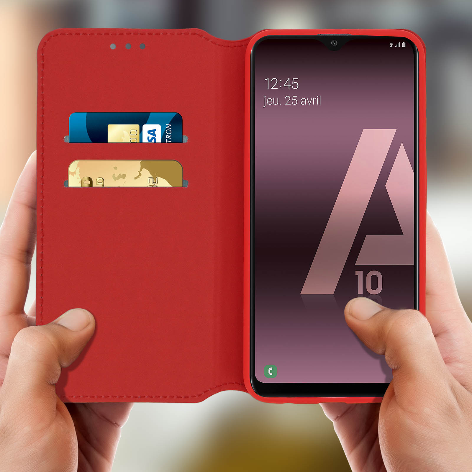 Housse Samsung Galaxy A10 Étui Folio Fonction Support Vidéo Rouge
