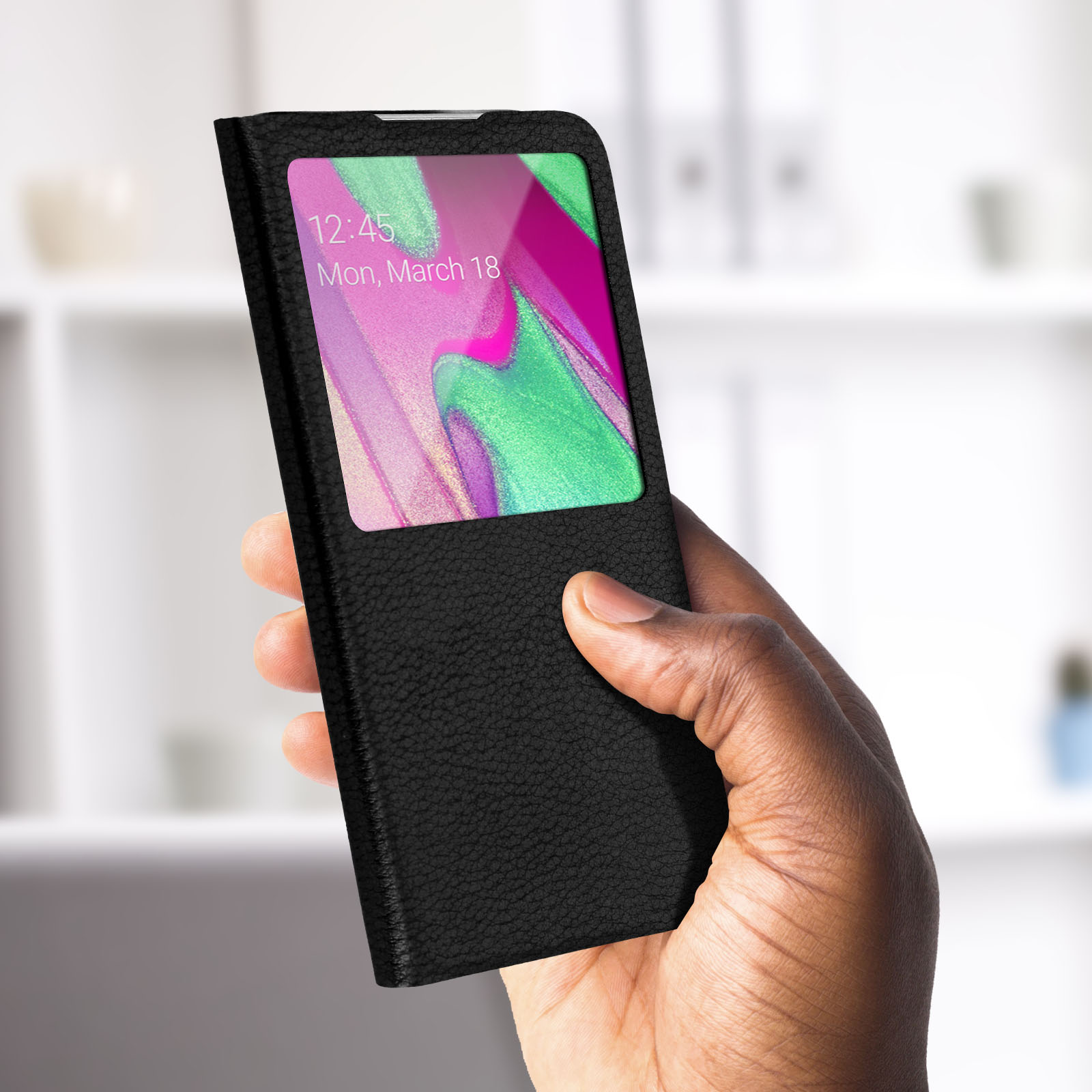 Housse Samsung Galaxy A40 Etui à Clapet Fenêtre Coque Ultra-fin Noir
