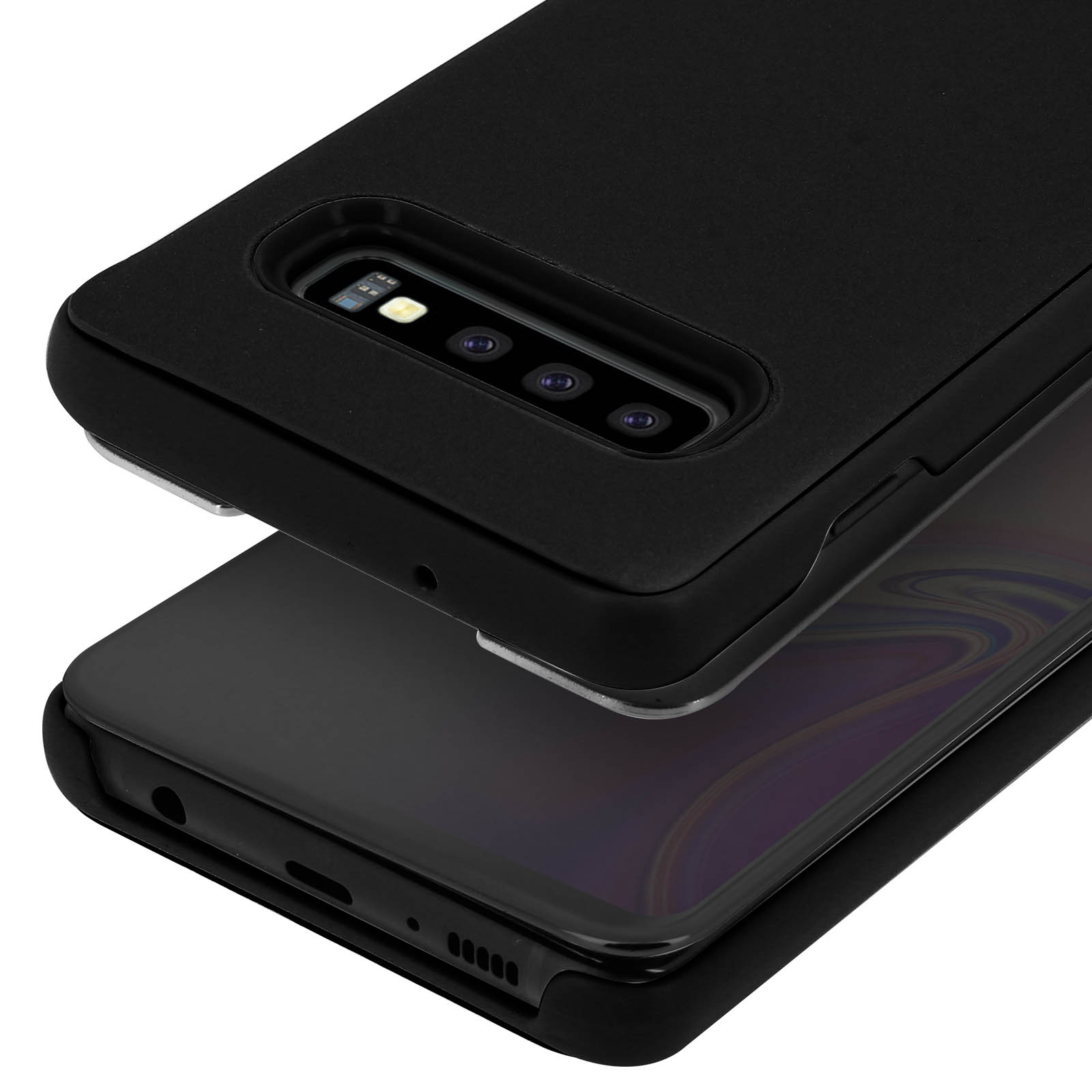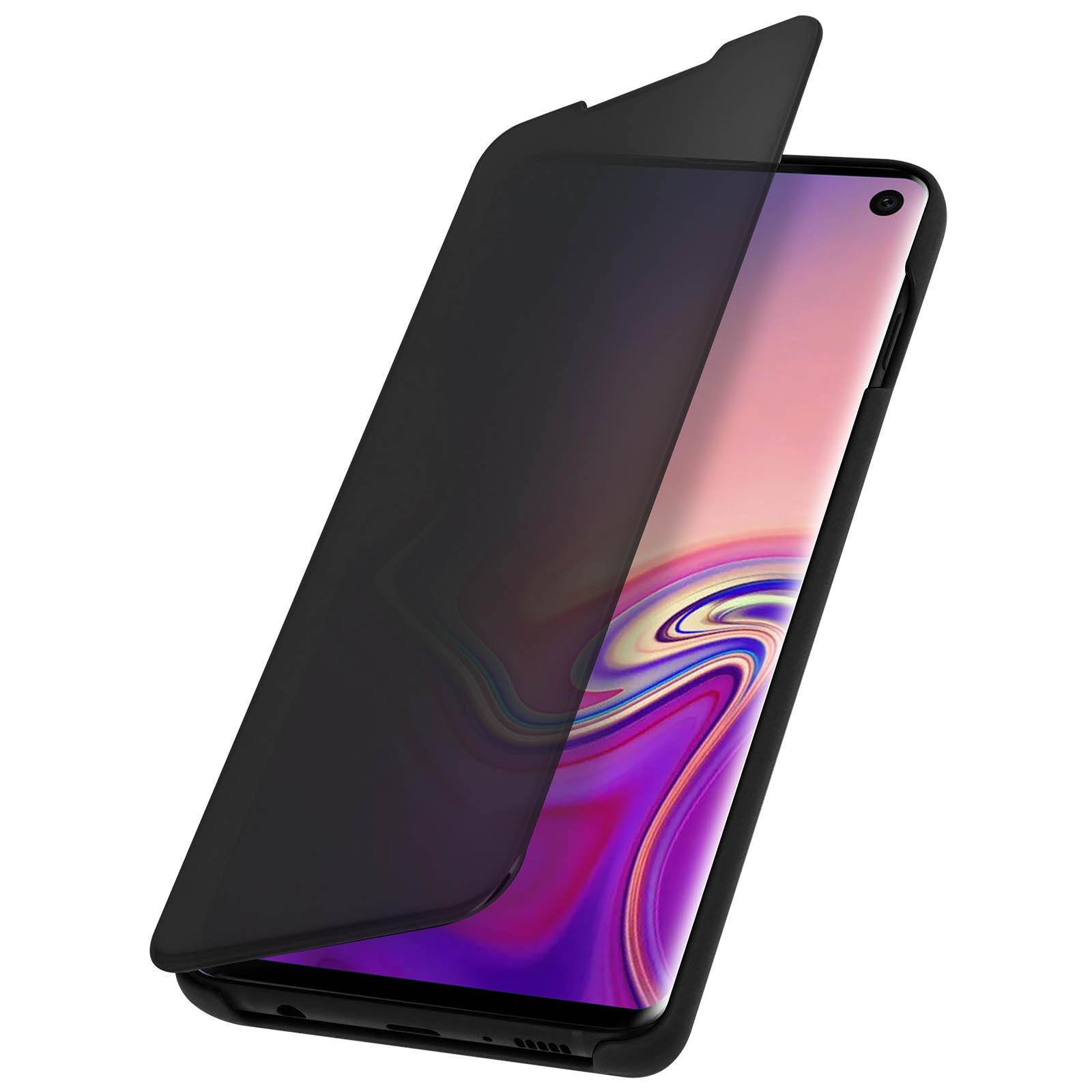 Housse Samsung Galaxy S10 Étui Miroir Clapet translucide Stand Vidéo noir